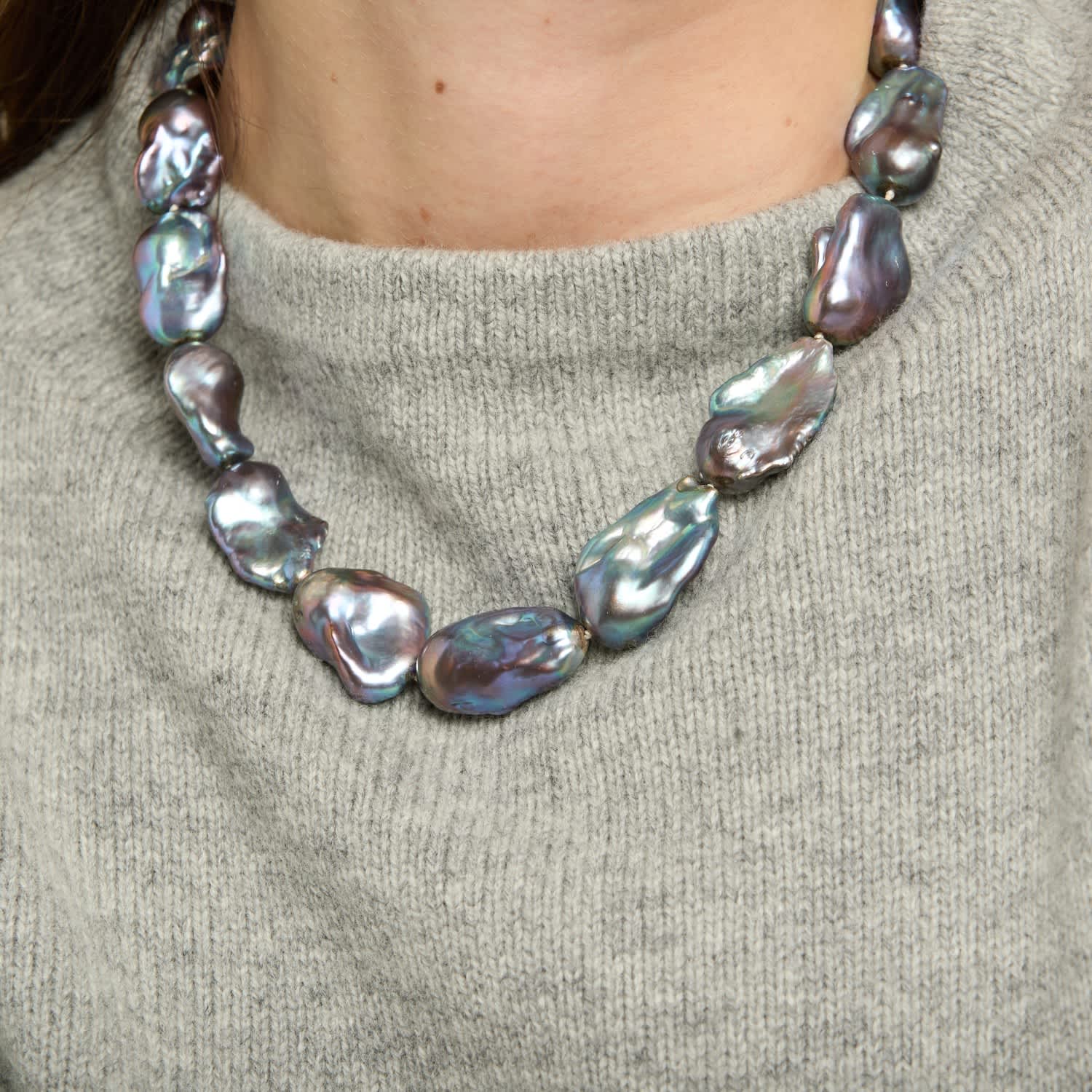 Decus Large Black Cultured Freshwater Baroque Pearl Necklace