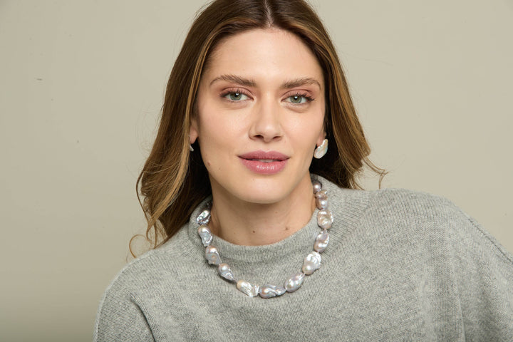 Decus Large Grey Cultured Freshwater Baroque Pearl Necklace