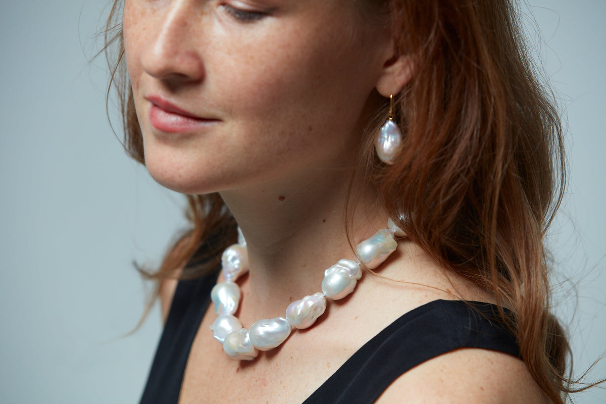 This Decus Large Baroque Cultured Freshwater Pearl Necklace by Pearls of the Orient Online is a showstopper, featuring out-of-this-world large baroque pearls. Each pearl is uniquely organic in shape, with its own story to tell, making this a truly one-of-a-kind piece. This necklace is a definite statement, perfect for adding a touch of natural, arresting beauty and sophisticated elegance to any outfit.