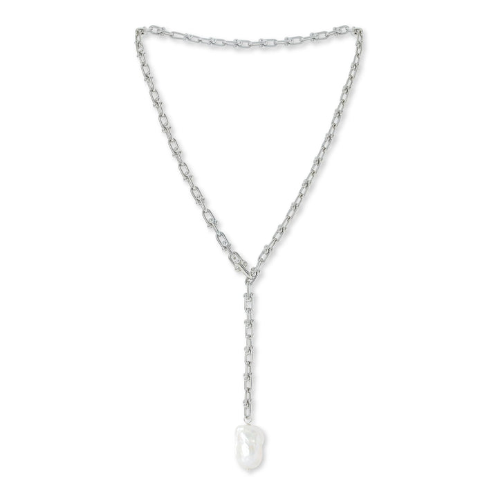 Decus Baroque Cultured Freshwater Pearl Drop On Chunky White Gold Chain