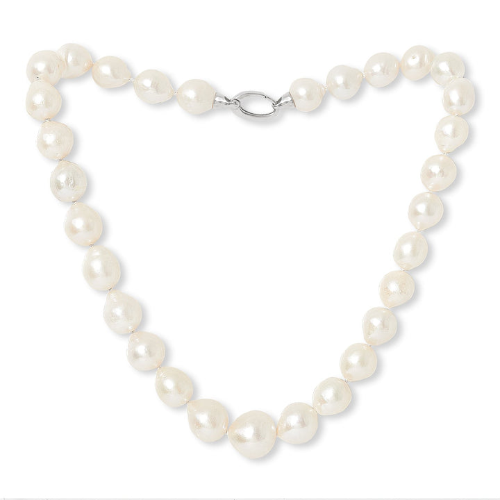 Gratia Large White Cultured Freshwater Pearl Necklace With Sterling Silver Clasp