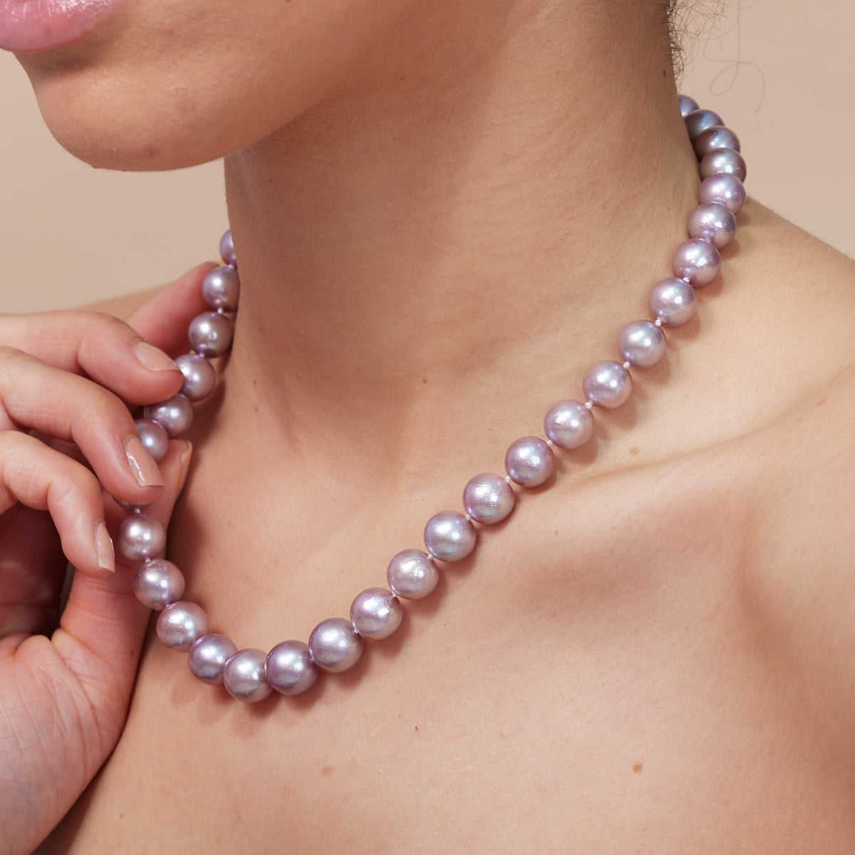This Gratia Mauve Pink Edison Pearl Necklace by Pearls of the Orient Online is an exquisite and luxurious strand of much-sought-after Edison cultured freshwater pearls. Known for their stunning quality and lustre, these pearls are a must-have for pearl lovers. The beautiful shade of mauve pink makes this an elegant and treasured statement piece that is a definite rival to more expensive South Sea pearls.