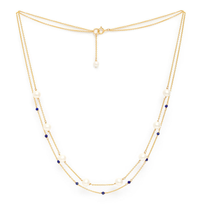 Credo Fine Double Chain Necklace With Cultured Freshwater Pearls & Lapis Lazuli
