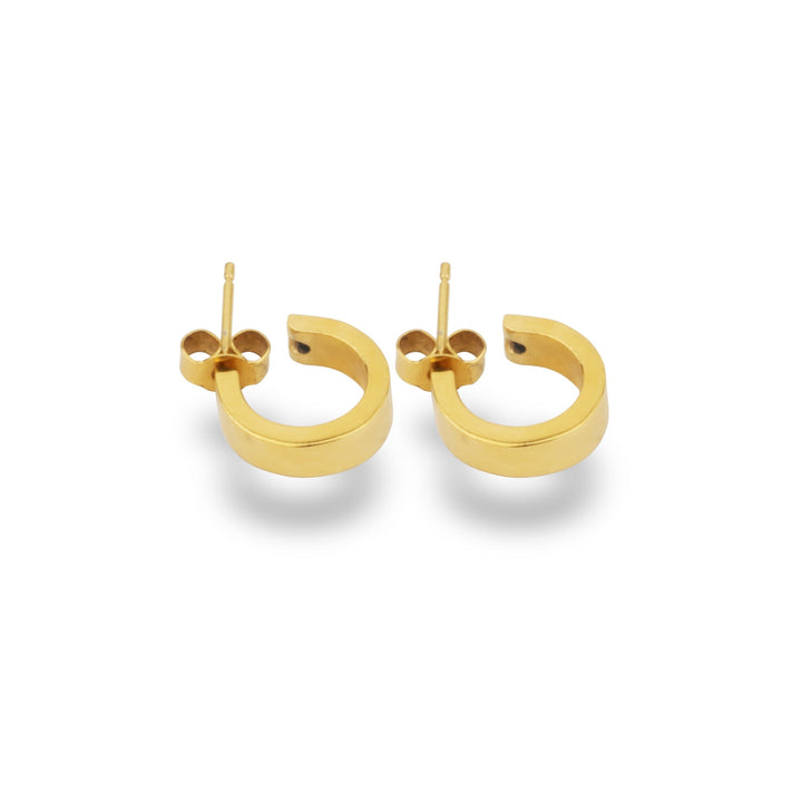 These Gold Flat Hoop Earrings by Phira London are a classic and staple accessory. These huggie hoop earrings are made in a rectangular tube shape for the most flattering fit. They are crafted from solid 925 sterling silver with 24ct gold vermeil, making them perfect for everyday wear.