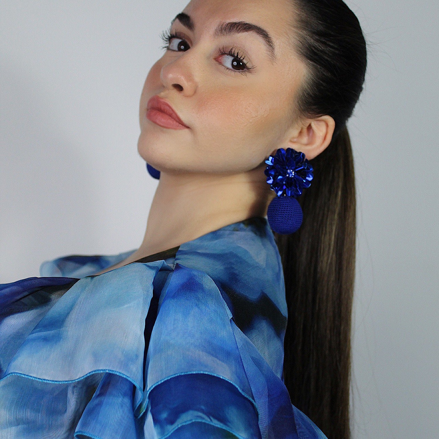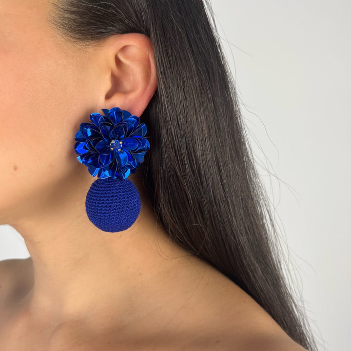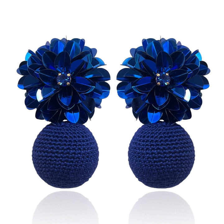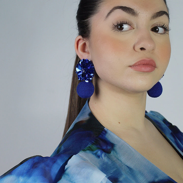These Blossom Bon Bons Dark Blue by Pinar Ozevlat are a sophisticated and textured statement of femininity. The fine crochet work, with sparkling crystals and sequins, gives these earrings a vibrant personality. The deep blue color adds a touch of elegance and mystery, making them a unique and cherished accessory for any occasion.