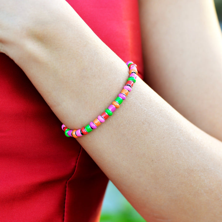 This Watermelon Bracelet by Pinnole is a pre-made set that is perfect for starting your jewelry journey. Made with high-quality, sustainably sourced silver and hand-painted enamel, this bracelet is a fun and unique piece. Its vibrant colors make it a playful accessory for everyday wear, while the durable materials ensure it will last for a long time.