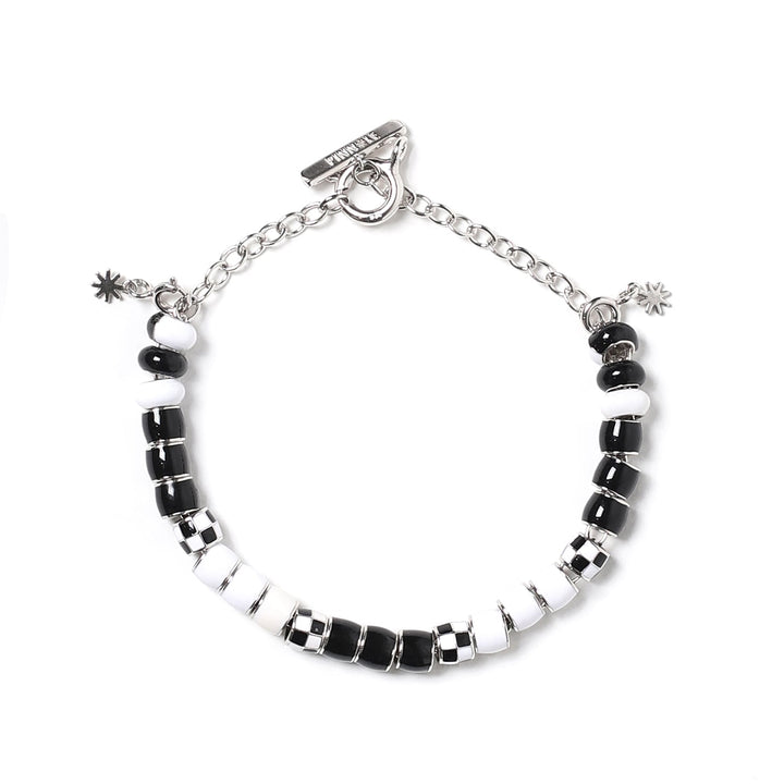 This bracelet is crafted from 925 sterling silver and features hand-mixed and hand-painted enamel. The set includes a bracelet, a needle threader, and two Playstar bead stoppers.