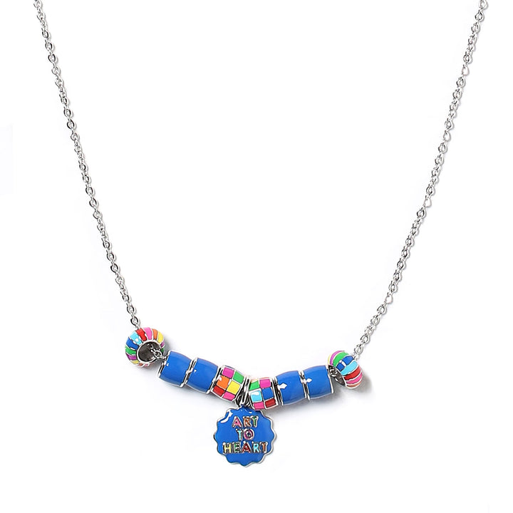 This Art To Heart Necklace by Pinnole is a testament to wearable art and personal expression. The necklace features a vibrant design with hand-mixed and hand-painted enamel, making each piece unique and full of character. It serves as a beautiful reminder to wear your heart on your sleeve, or in this case, around your neck. The playful aesthetic is perfect for adding a pop of color and personality to any outfit.