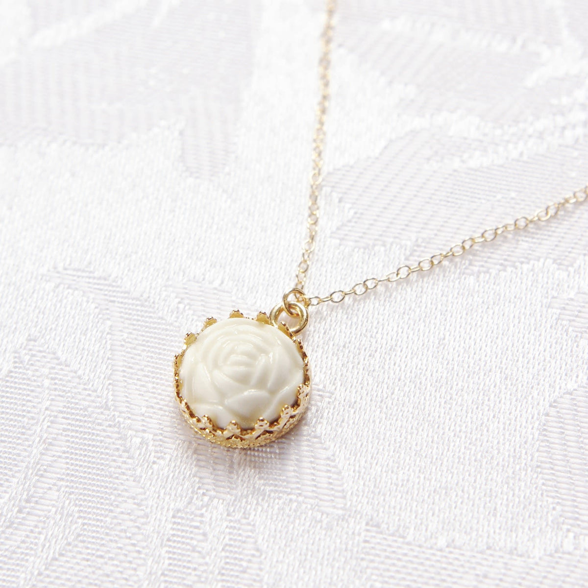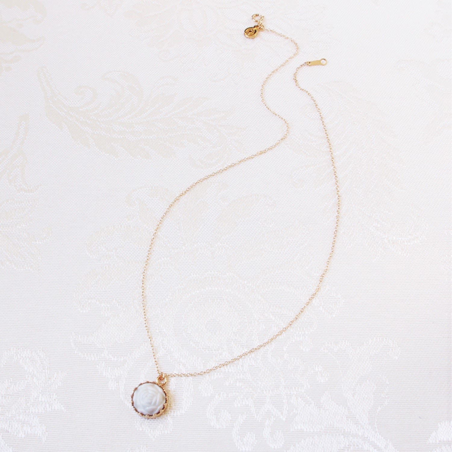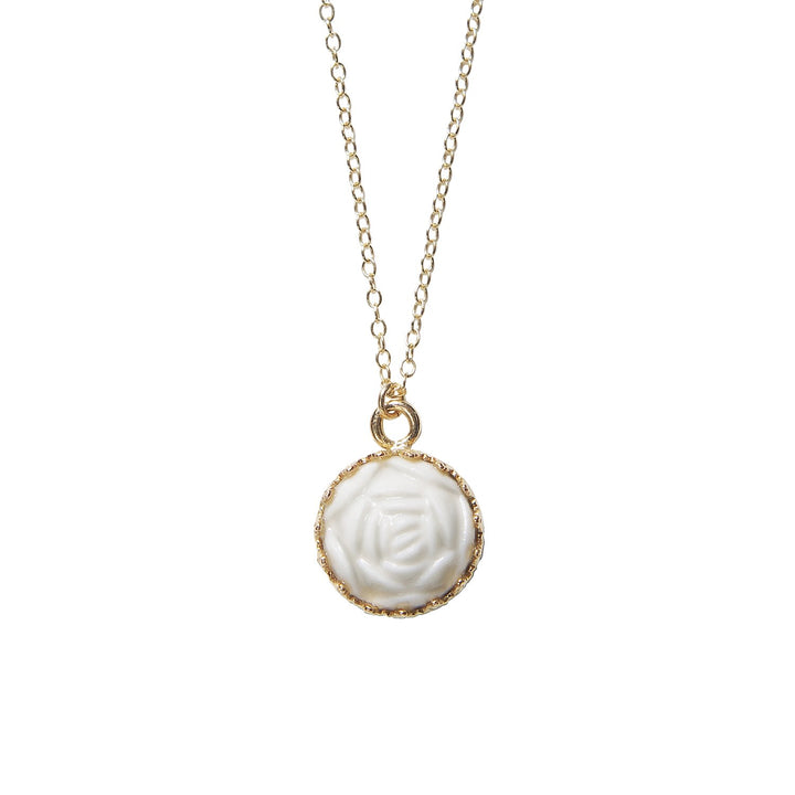 Mini Porcelain Rose Charm Gold Filled Necklace