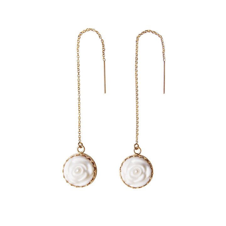 Porcelain Rose With Pearl Gold Filled Chain Earrings
