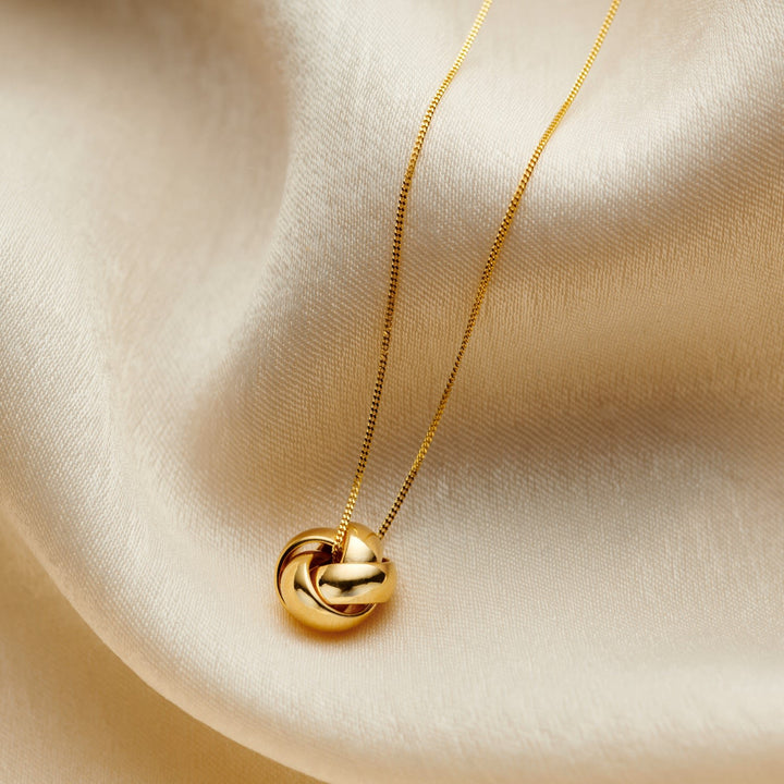 This necklace is made from solid 9ct yellow gold and features a knot charm on a classic 9ct gold chain.