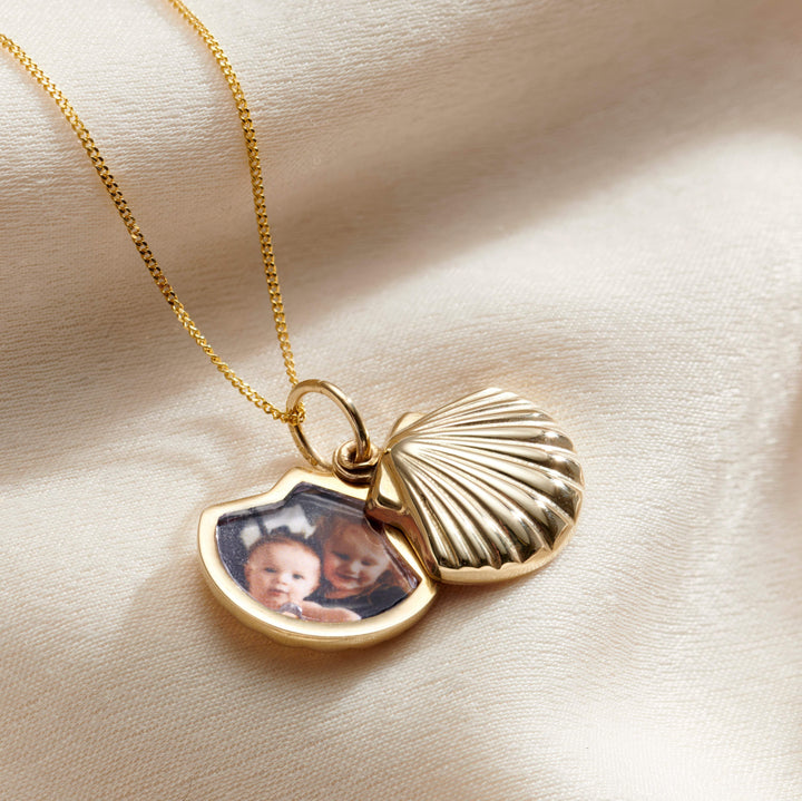 This 9Ct Gold Petite Shell Locket Necklace by Posh Totty Designs is a timeless and sentimental piece. Its delicate design features a functional locket, perfect for holding a cherished memory or a small photograph. This beautiful necklace is a wonderful gift for a mother, symbolizing the treasured moments and love held within a family. Crafted with high-quality gold, it is a versatile and elegant addition to any collection.