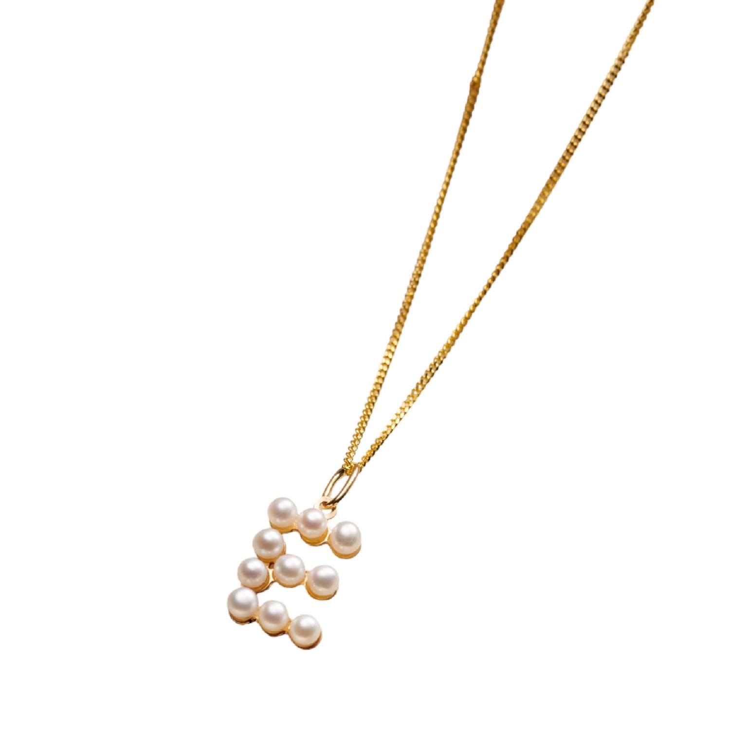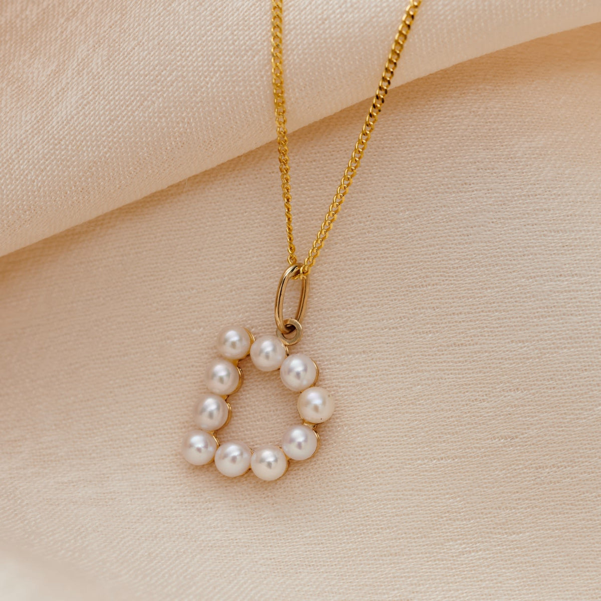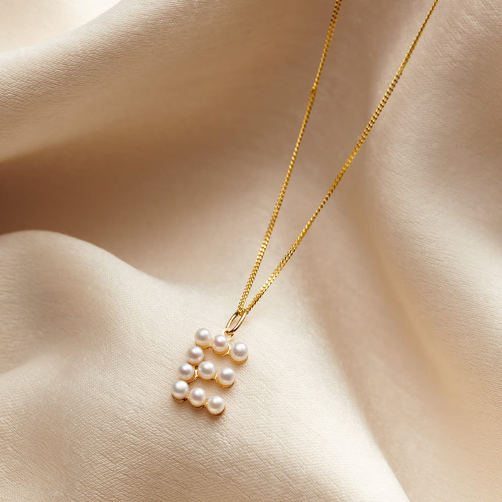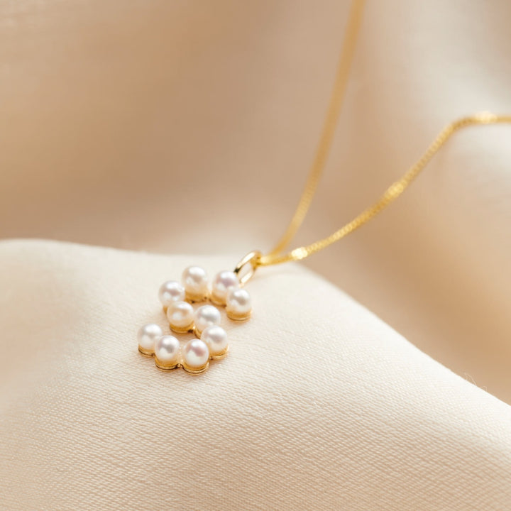 This pendant necklace is handmade from 9ct yellow gold and features cultured freshwater pearls and an initial charm. It comes on a 9ct yellow gold chain.
