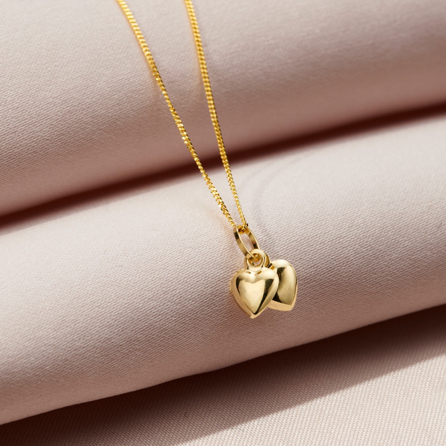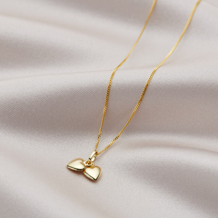 9Ct Gold Double Heart Charm Necklace