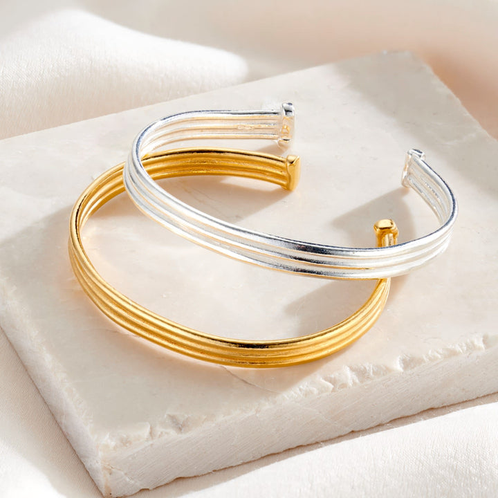 This bangle is handcrafted from high-quality recycled sterling silver and gold. The gold-plated items are compliant with the Assay nickel release test.