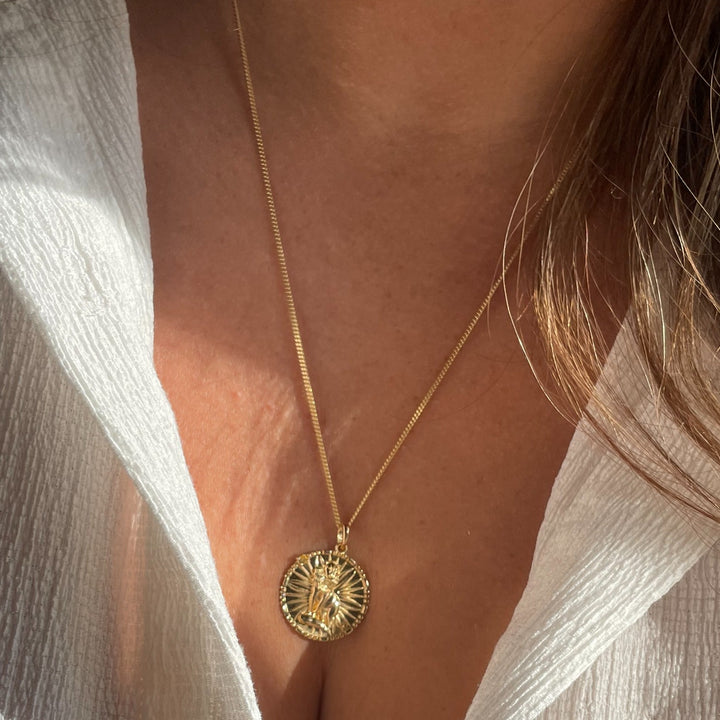 This Papyrus Zodiac Vermeil Leo Pendant by Quartz & Canary is a truly exceptional piece that embodies the essence of ancient astrological energy. Inspired by Egyptian astrology, it features textures like Papyrus and ancient textile patterns to infuse it with authenticity. This pendant is an amulet made for gods and goddesses.