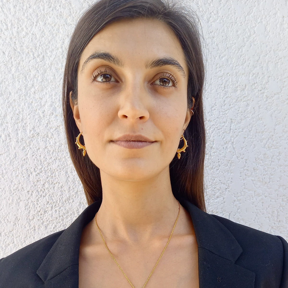These hoops are made from a base of recycled 92.5 sterling silver with a 1-micron plating of 22-karat gold. They are handcrafted with hinged fastenings.