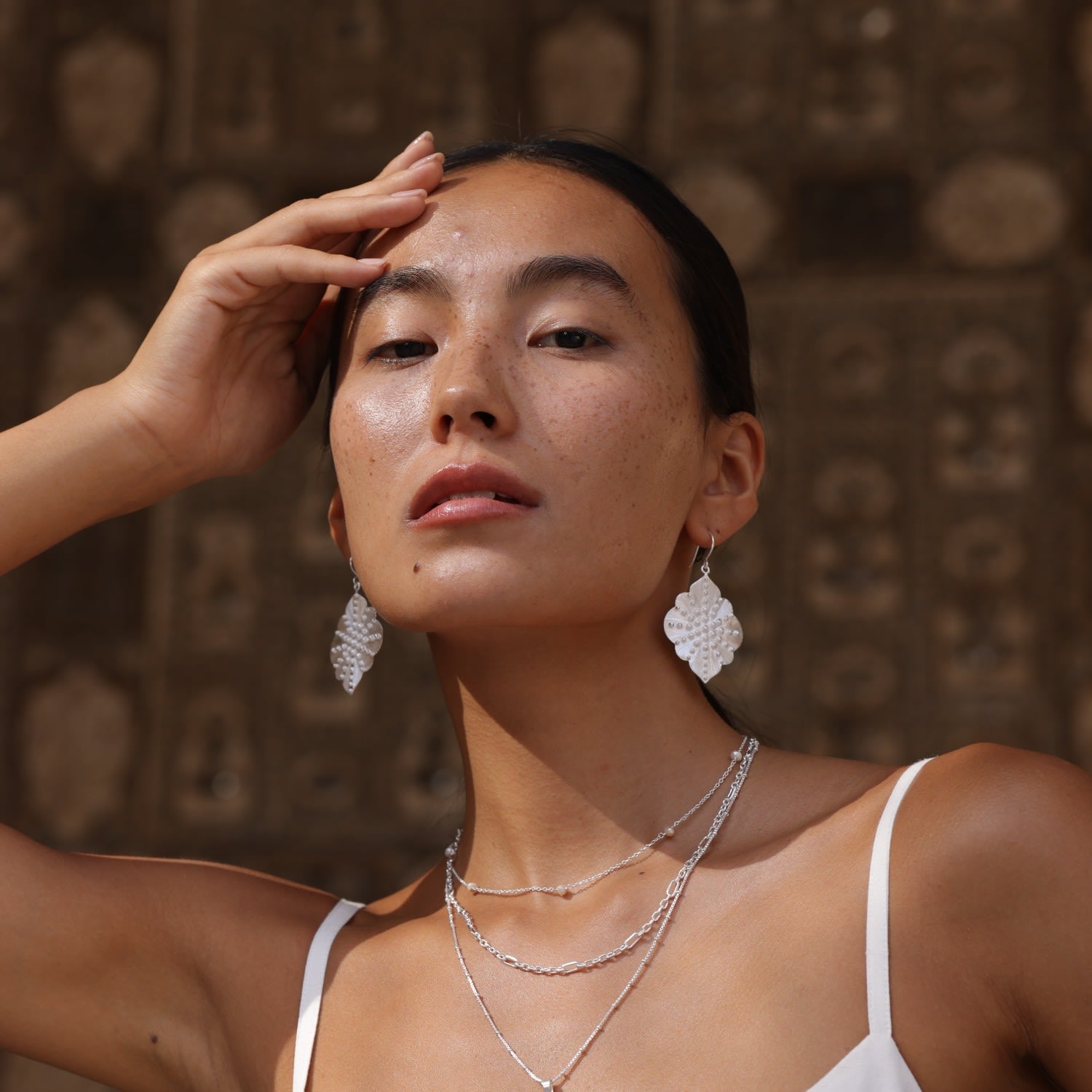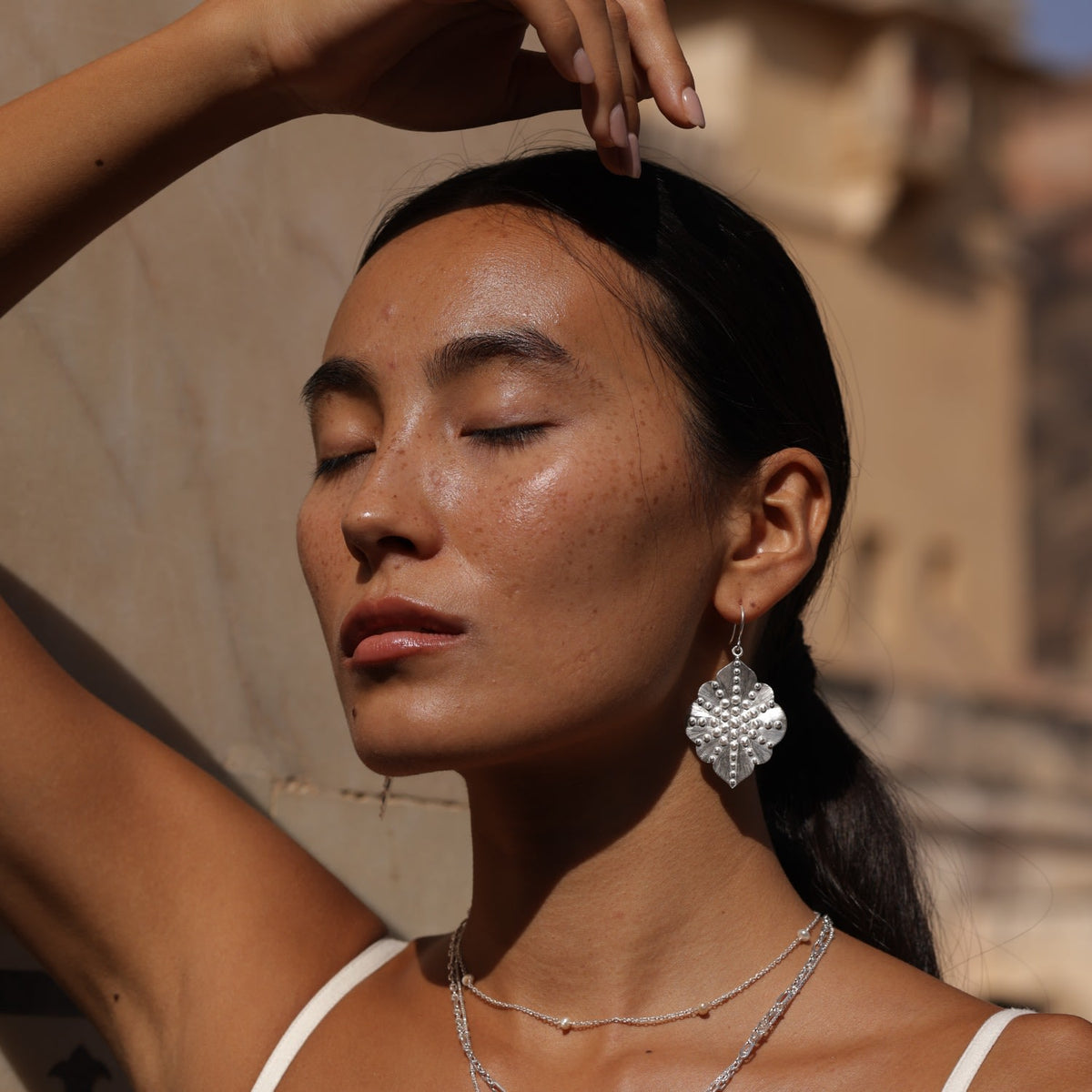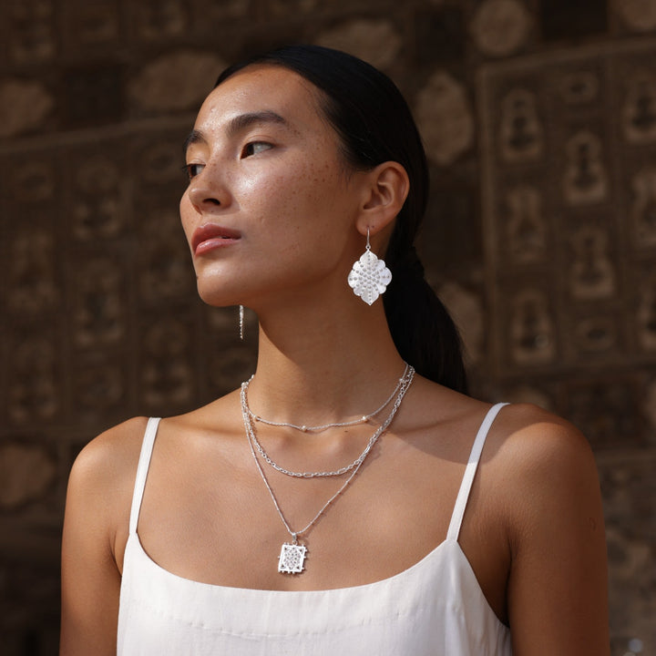 Granulated Ashram Window Earrings - Sterling Silver