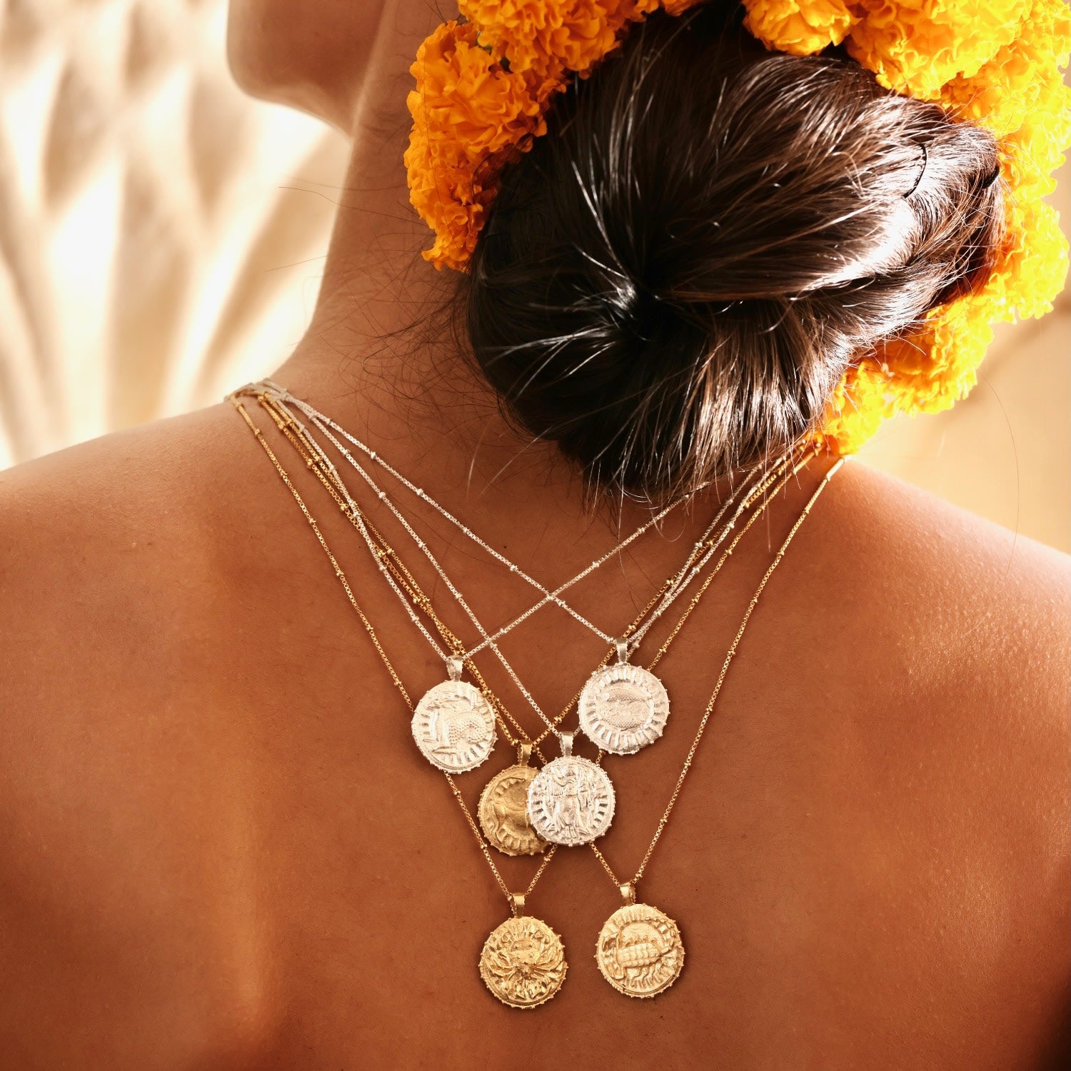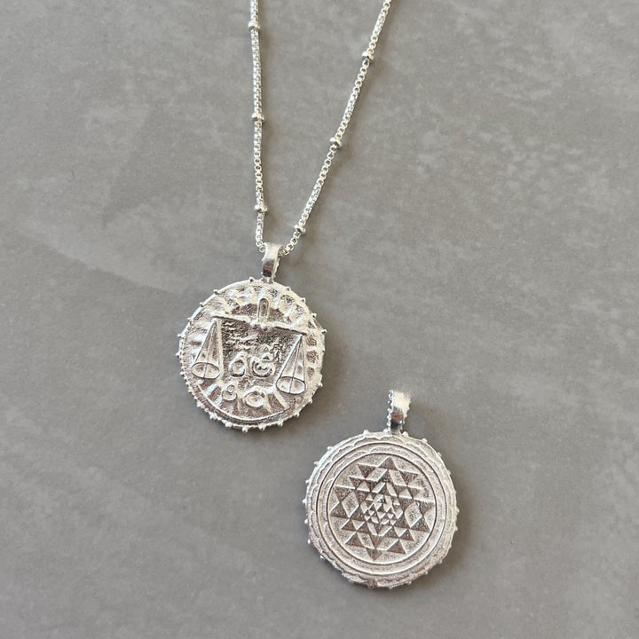 The Capricorn Zodiac Manifesting Pendant by Rize is a beautifully handcrafted and meaningful accessory. This double-sided coin pendant features a stunning zodiac design on one side and the auspicious "Sri Yantra" manifesting design on the other, which is believed to help clear negative energy and bring harmony and prosperity. Made by Fairtrade artisans from recycled sterling silver, it is a stylish and powerful tool for personal growth.