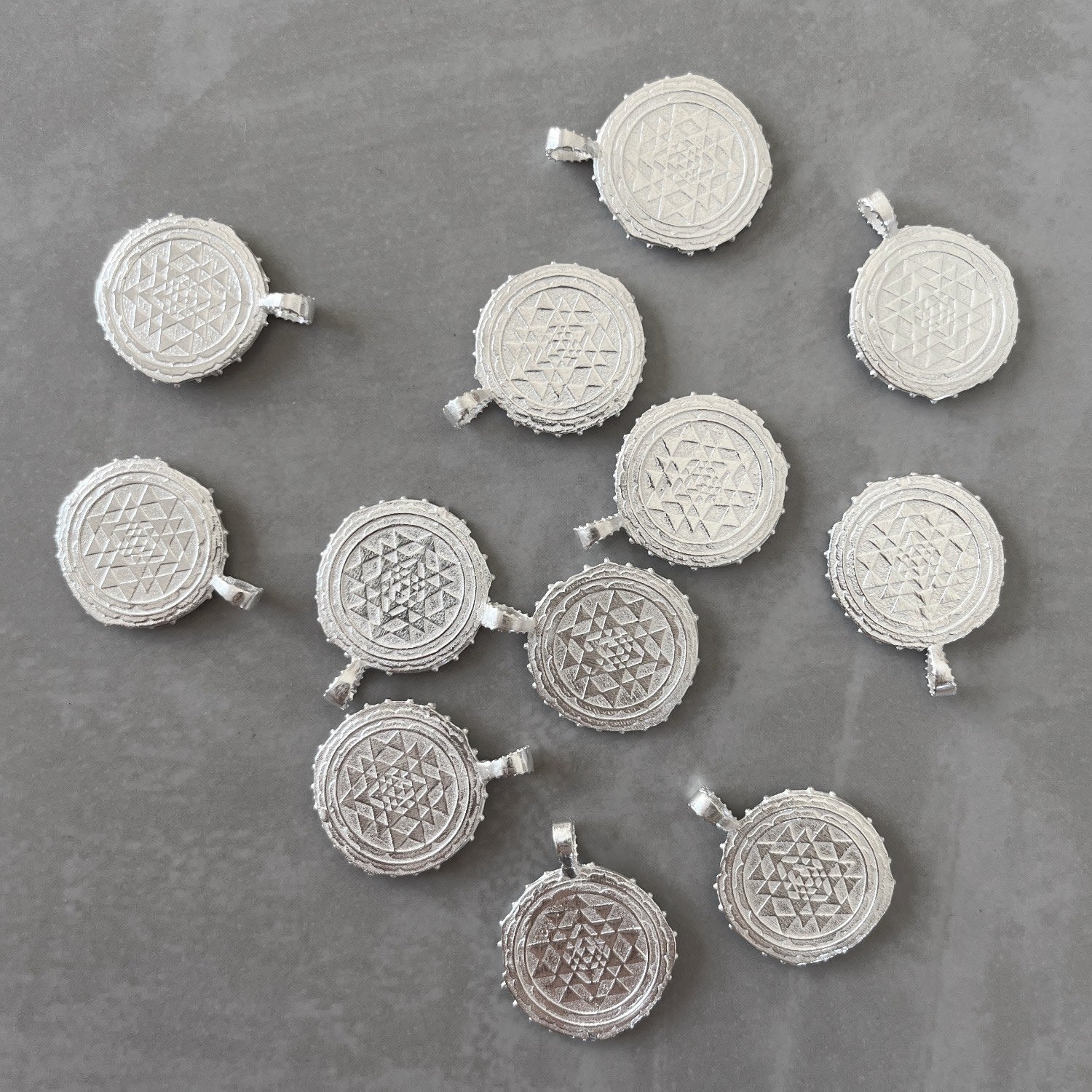 This double-sided pendant is handcrafted from recycled sterling silver (92.5%). It is approximately 17mm x 17mm and hangs on an 18-inch chain with a 2-inch extender.