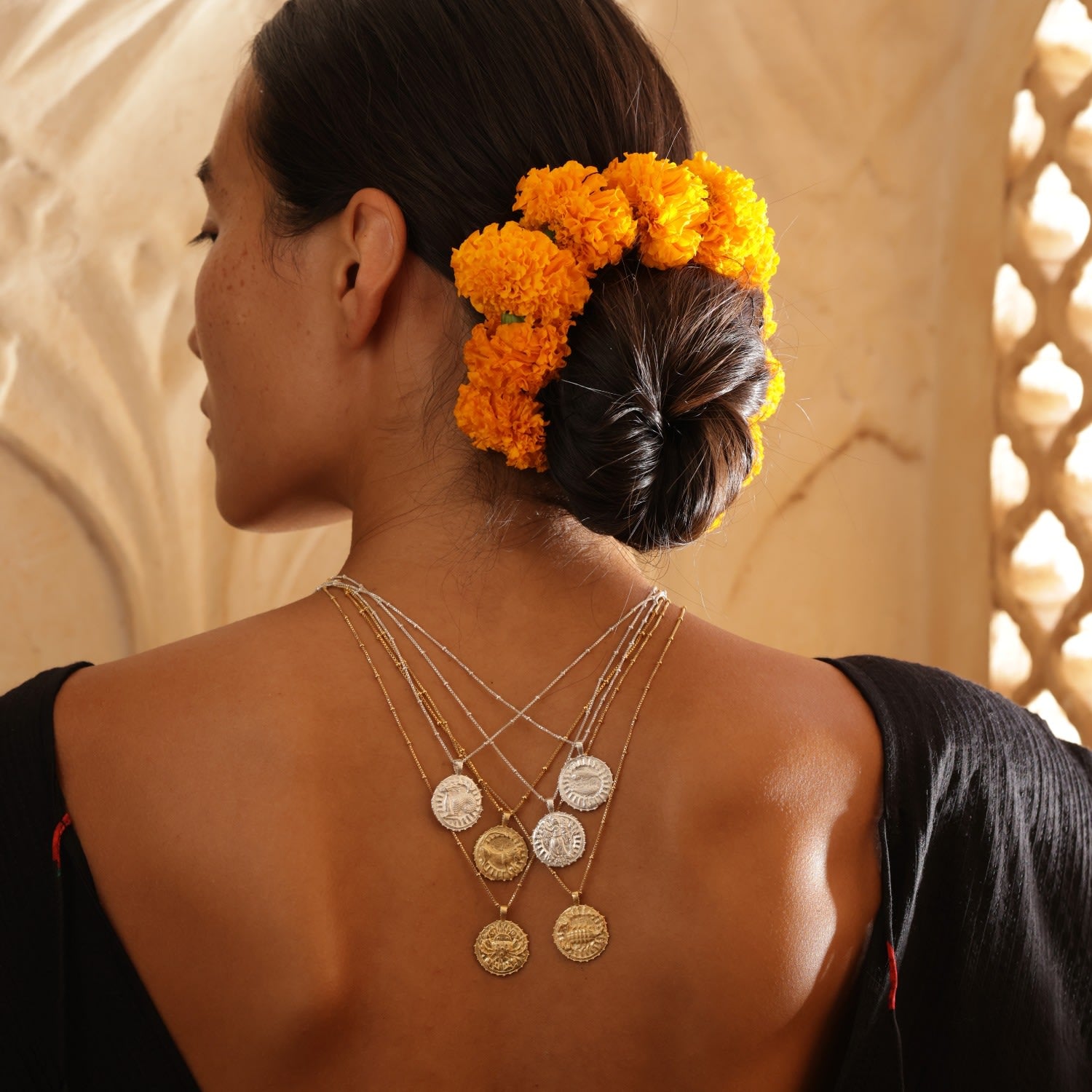 The Aries Zodiac Manifesting Necklace by Rize is a beautifully handmade and meaningful piece. This double-sided coin pendant features a stunning zodiac design on one side and the auspicious "Sri Yantra" manifesting design on the other, which is believed to help clear negative energy and bring harmony and prosperity. Made by Fairtrade artisans from recycled sterling silver, it is a stylish and powerful tool for personal growth.