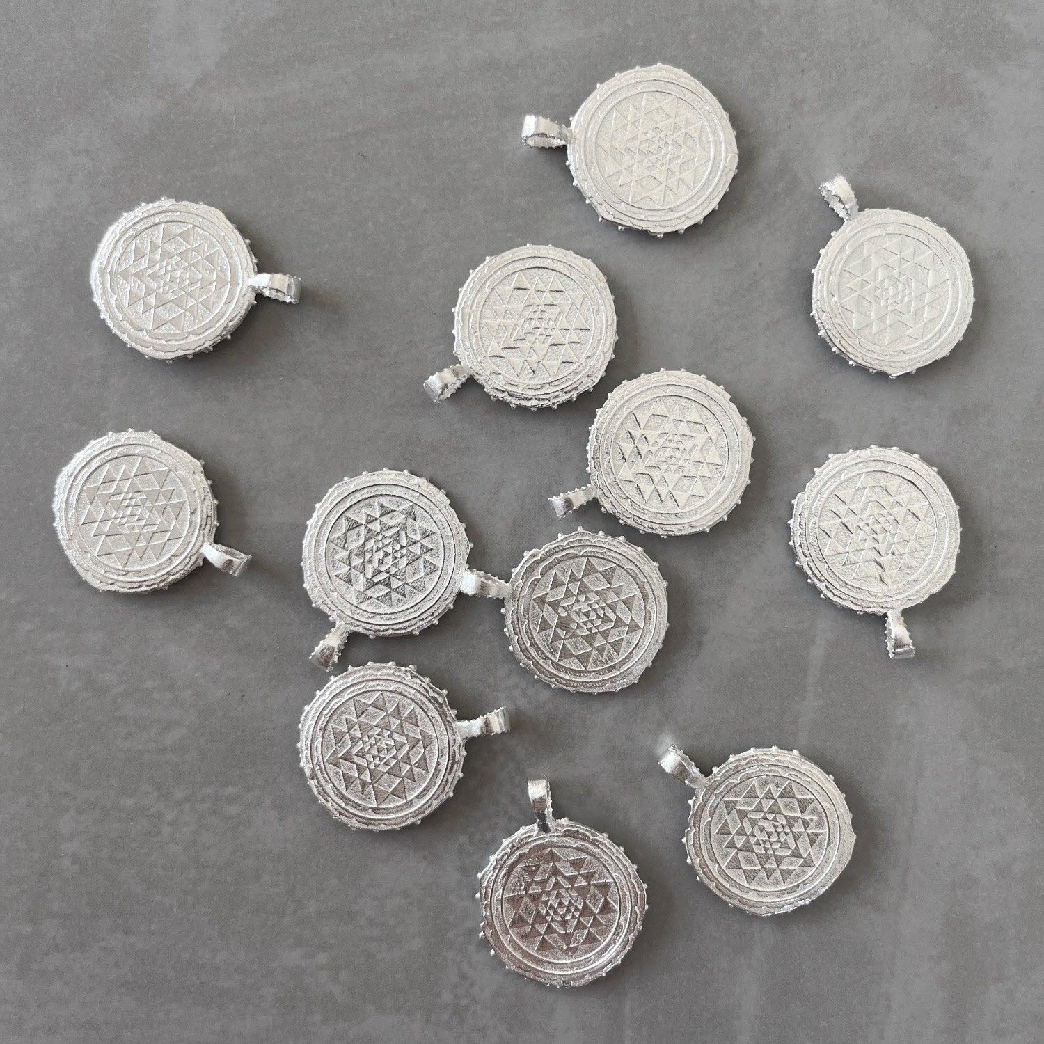 This double-sided pendant is handcrafted from recycled sterling silver (92.5%). It is approximately 17mm x 17mm and hangs on an 18-inch chain with a 2-inch extender.