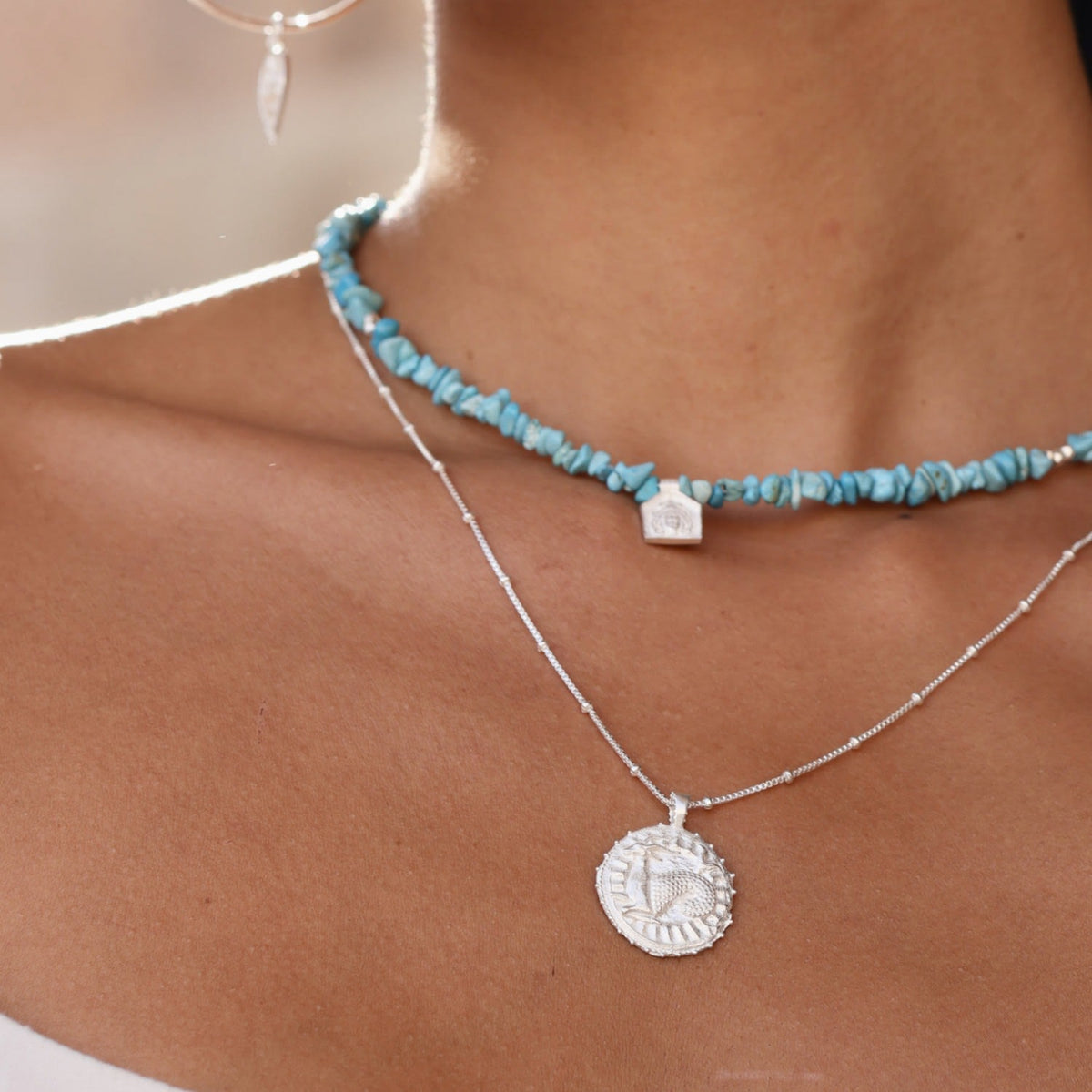The Libra Zodiac Manifesting Necklace by Rize is a beautifully handmade and meaningful piece. This double-sided coin pendant features a stunning zodiac design on one side and the auspicious "Sri Yantra" manifesting design on the other, which is believed to help clear negative energy and bring harmony and prosperity. Made by Fairtrade artisans from recycled sterling silver, it is a stylish and powerful tool for personal growth.