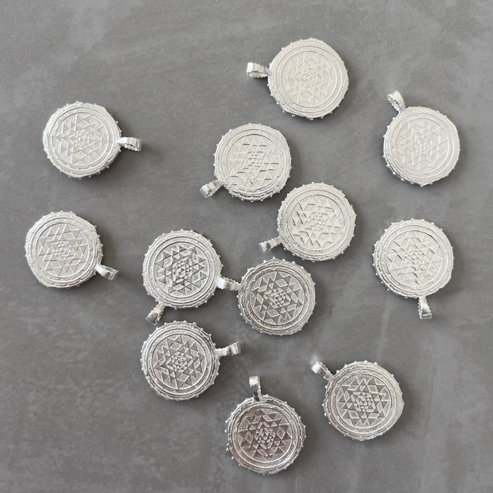 This double-sided pendant is handcrafted from recycled sterling silver (92.5%). It is approximately 17mm x 17mm and hangs on an 18-inch chain with a 2-inch extender.