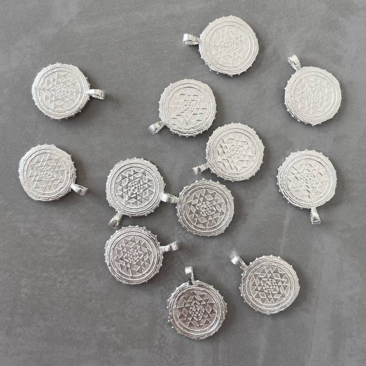 This double-sided pendant is handcrafted from recycled sterling silver (92.5%). It is approximately 17mm x 17mm and hangs on an 18-inch chain with a 2-inch extender.