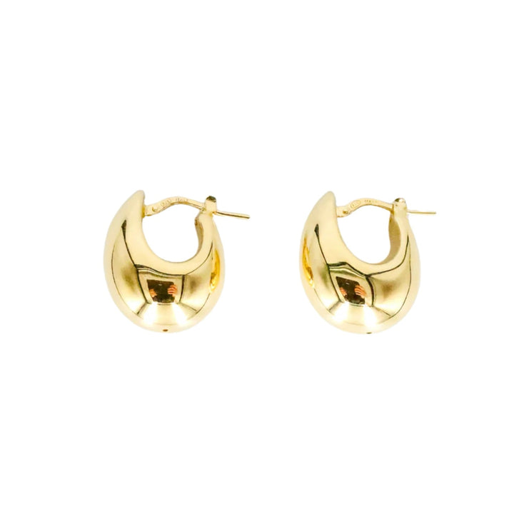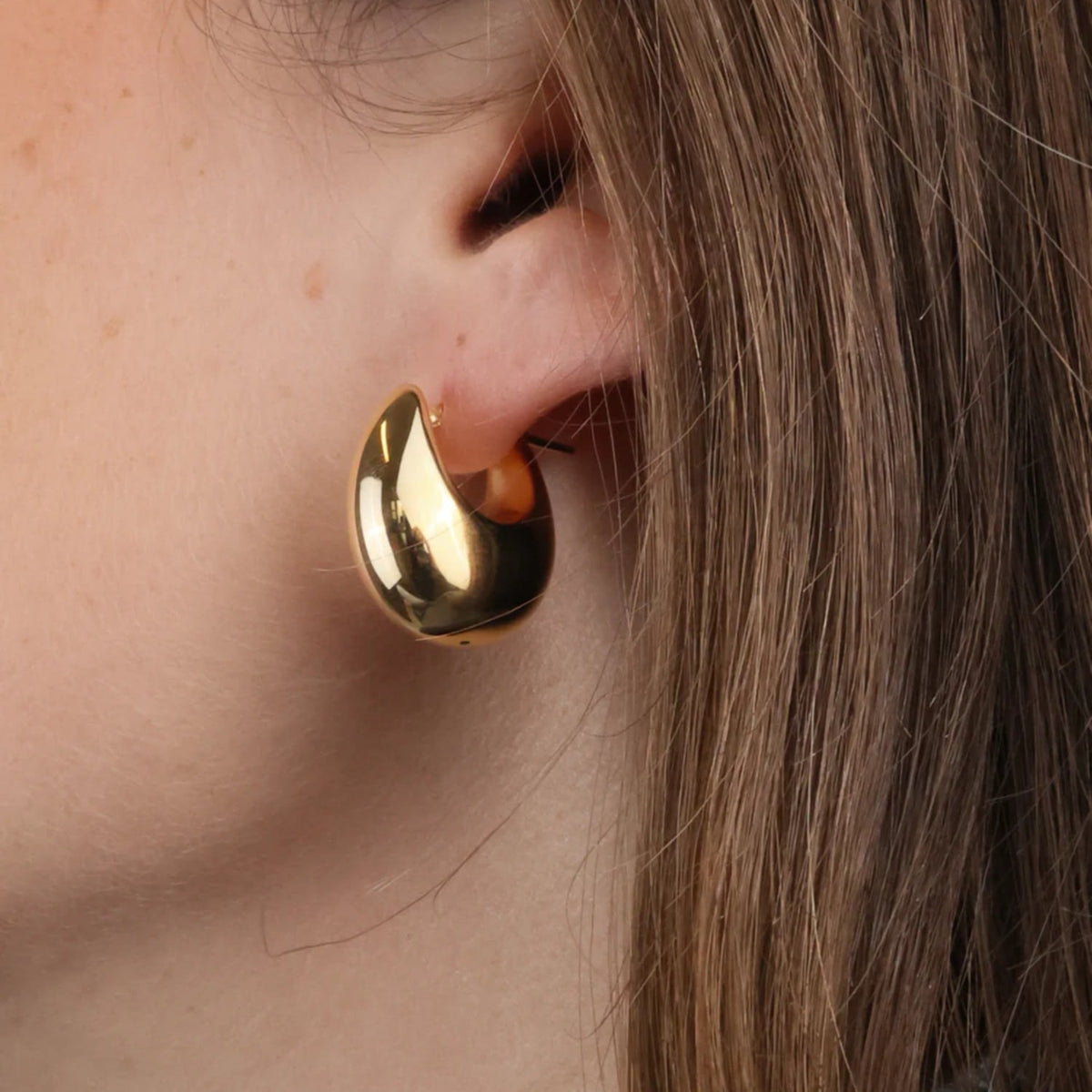 These Bocca Piccolo Hoops Gold by Romantico Romantico Studios are a new everyday favorite. These gold-plated brass hoops are designed to be a versatile accessory that can be worn with a classic white shirt or a chunky sweater for a chic and polished look.