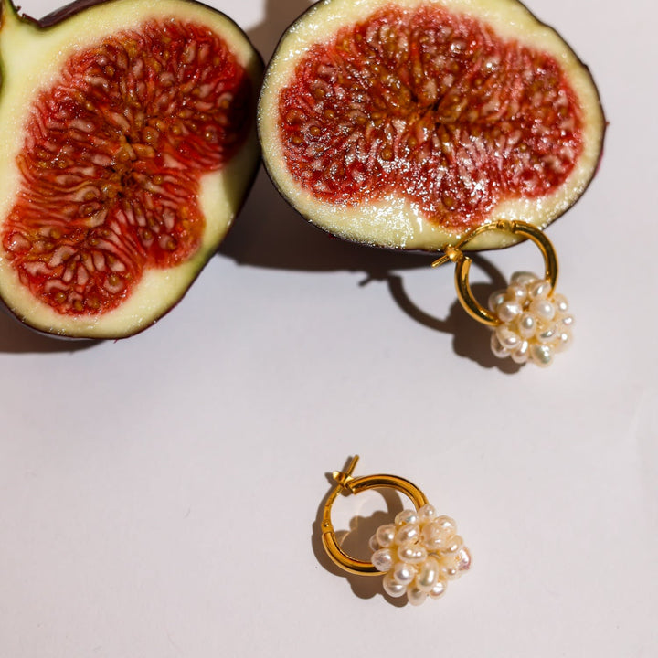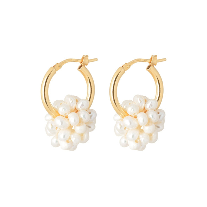 These hoop earrings are crafted from 18k gold-plated brass and freshwater pearls.