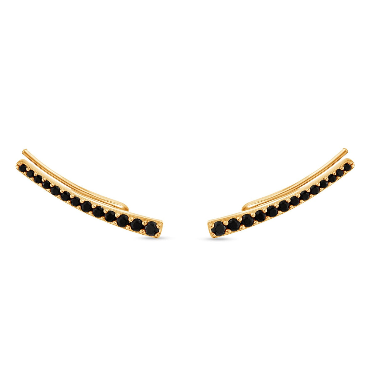 Lovingly handcrafted using an ancient lost-wax casting technique, this ear climber is made from solid 925 sterling silver plated in 18k gold vermeil. It is adorned with hand-set man-made black diamonds. The design is hypoallergenic.