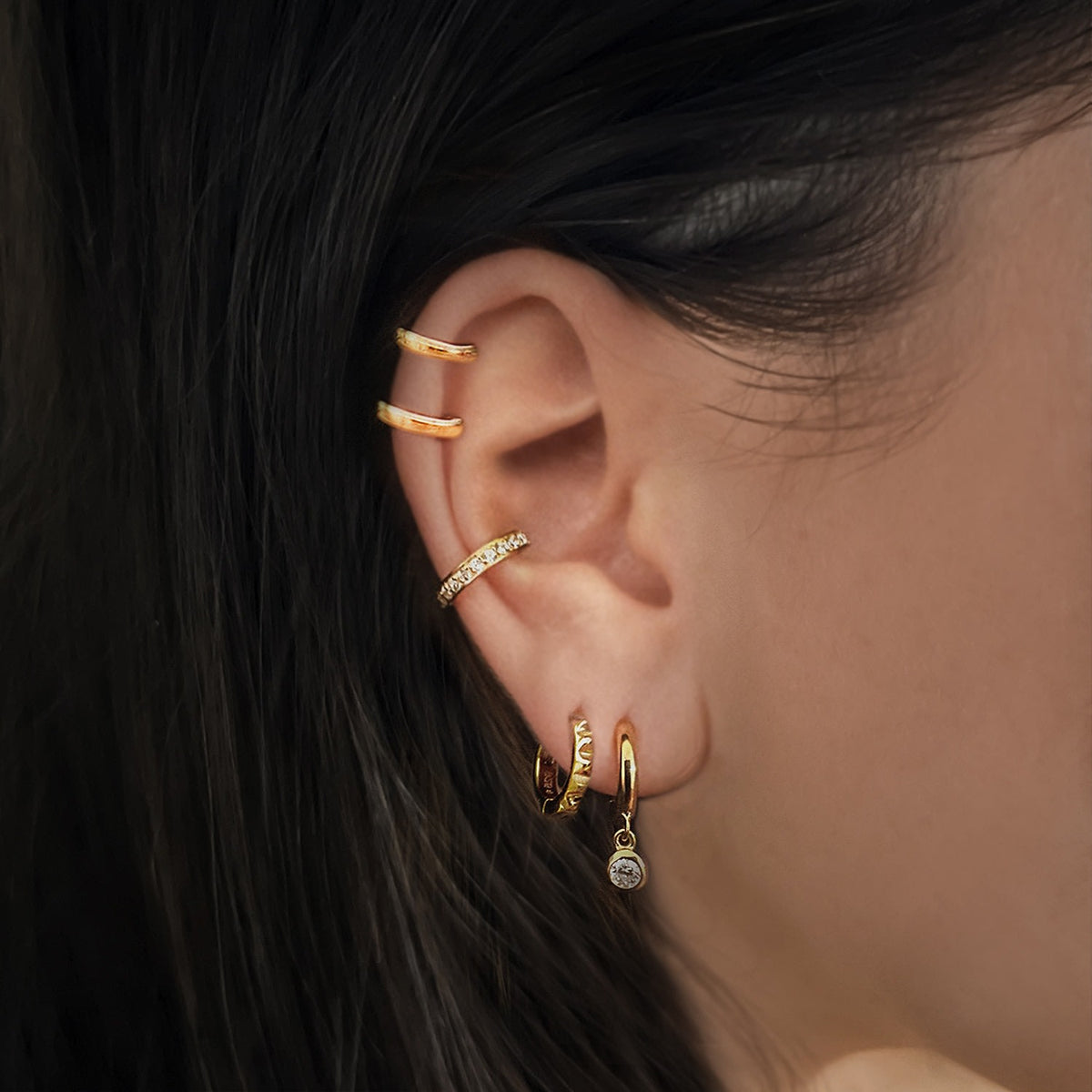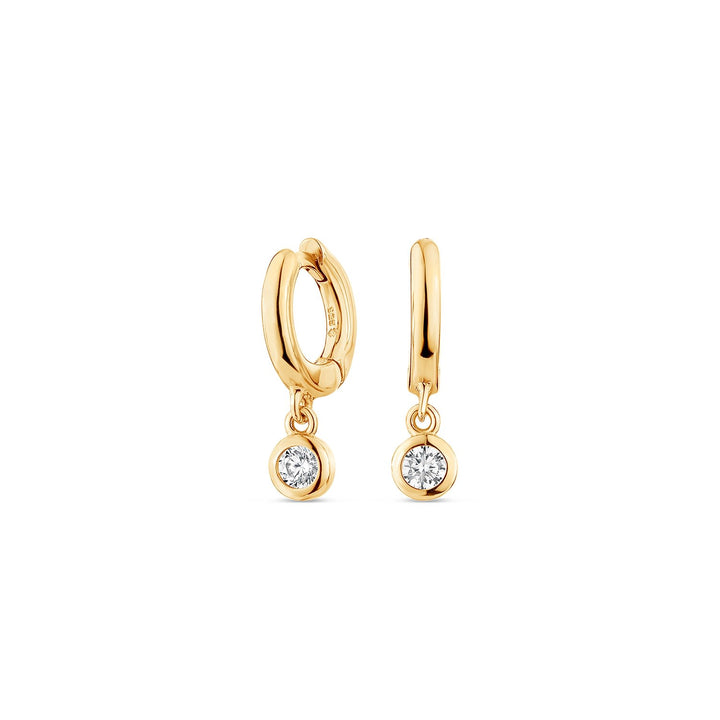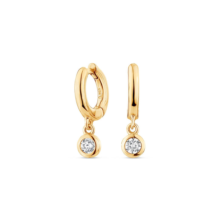 Handcrafted from solid 925 sterling silver and plated with 18k gold vermeil, these huggie earrings are adorned with a hand-set man-made CZ diamond stimulant. The design is hypoallergenic.