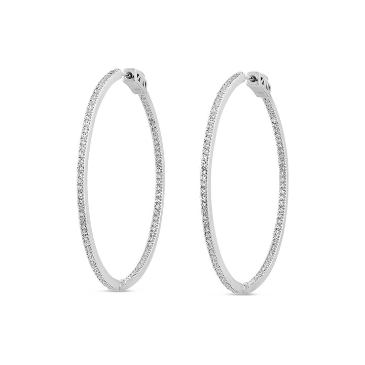 These hoop earrings are handcrafted from a 925 sterling silver base with a premium silver rhodium plate and features man-made white diamonds. They are hypoallergenic.