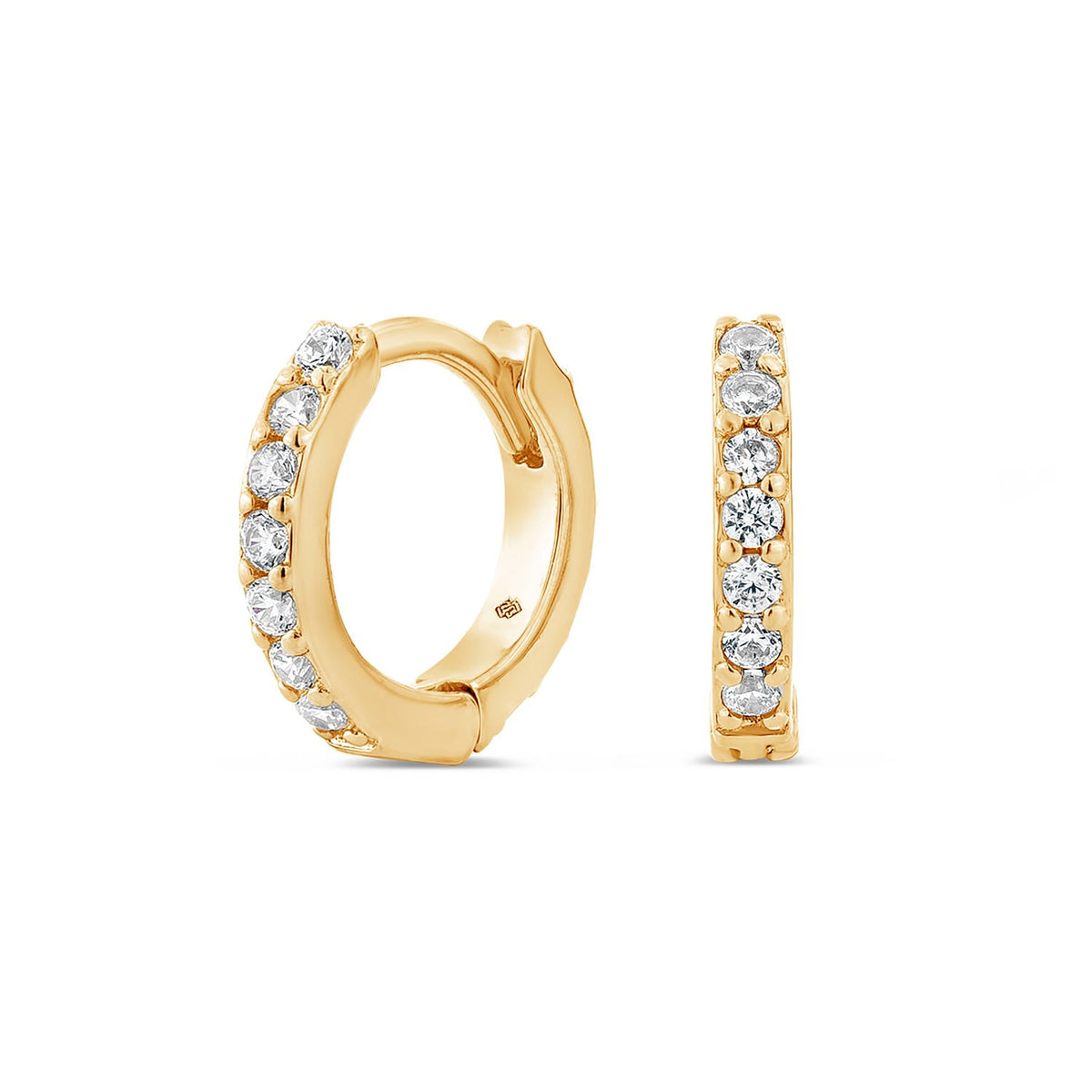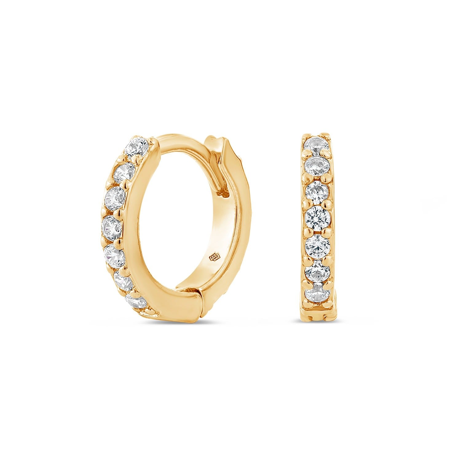 Handcrafted from a solid 925 sterling silver base, these hypoallergenic earrings feature meticulously hand-set man-made cubic zirconia diamond stimulants and are finished with a durable 18k gold vermeil plating.