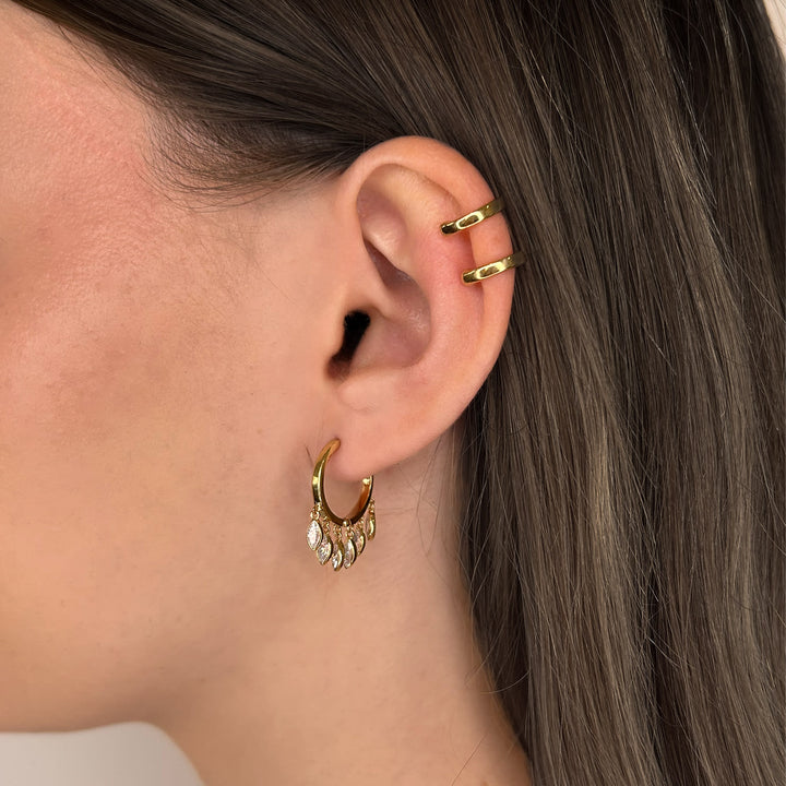 Natural Drop Huggie Earrings With Man Made Cz Diamond Stimulant In Sterling Silver & 18K Gold Vermeil