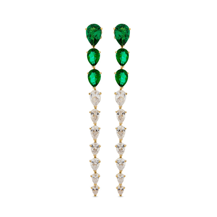 Pure Drop Grande Earring With Man Made Emerald & Cz Diamond Stimulant In Sterling Silver & 18K Gold Vermeil