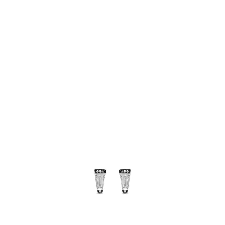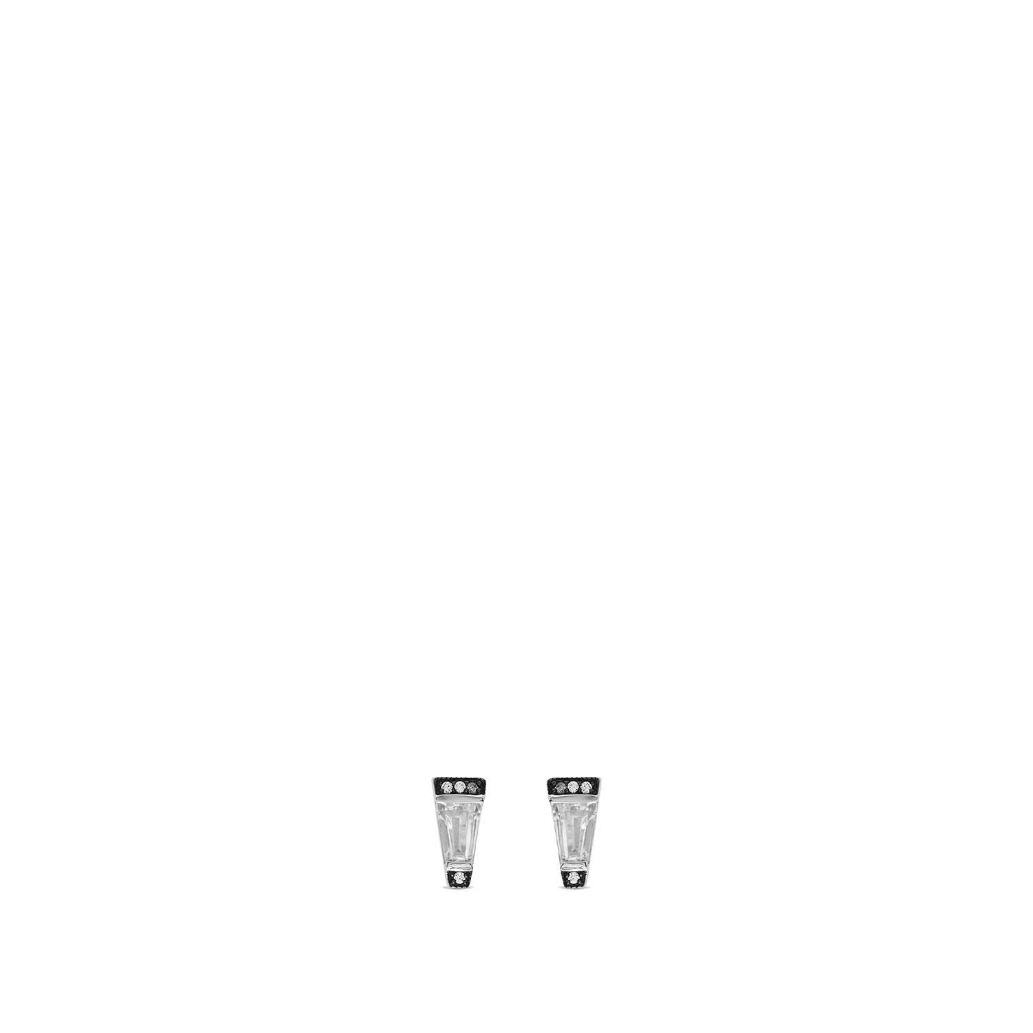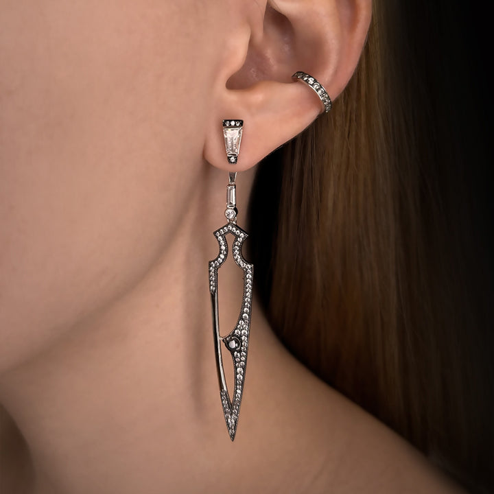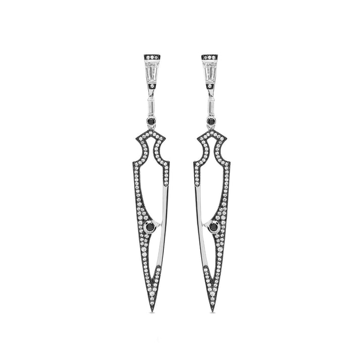 Shield Earrings With Natural Black Diamond & Man Made White Cz Diamond Stimulant In Platinum