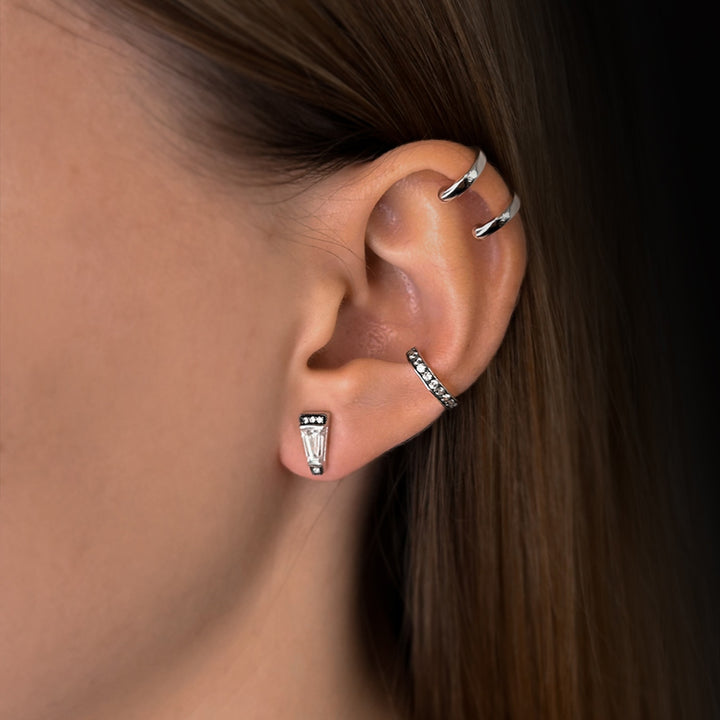 The Shield Earrings by Sally Skoufis are a powerful and elegant piece that captures the energy of Mother Earth and the inner strength of the wearer. These delicate earrings each feature a certified natural black diamond and sparkling man-made white diamond stimulants, providing alluring brilliance and meaning when worn. With 100% of the proceeds from the black diamonds donated to a cause, these earrings are a provocative symbol of change.