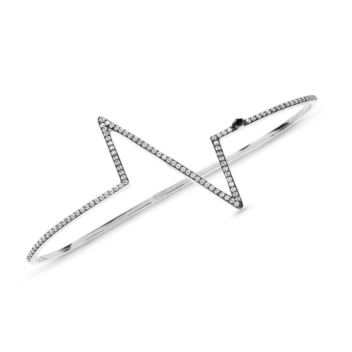 Handcrafted from a solid 925 sterling silver base with a premium black rhodium plate, this hypoallergenic cuff features a 0.13-carat natural black diamond (2.2mm) and man-made white cubic zirconia diamonds.