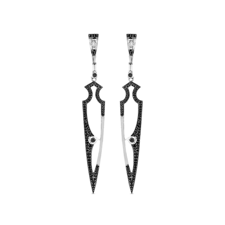 Shield Earrings With Natural Black Diamond & Man Made Cz Diamond Stimulant In Sterling Silver & Platinum Black