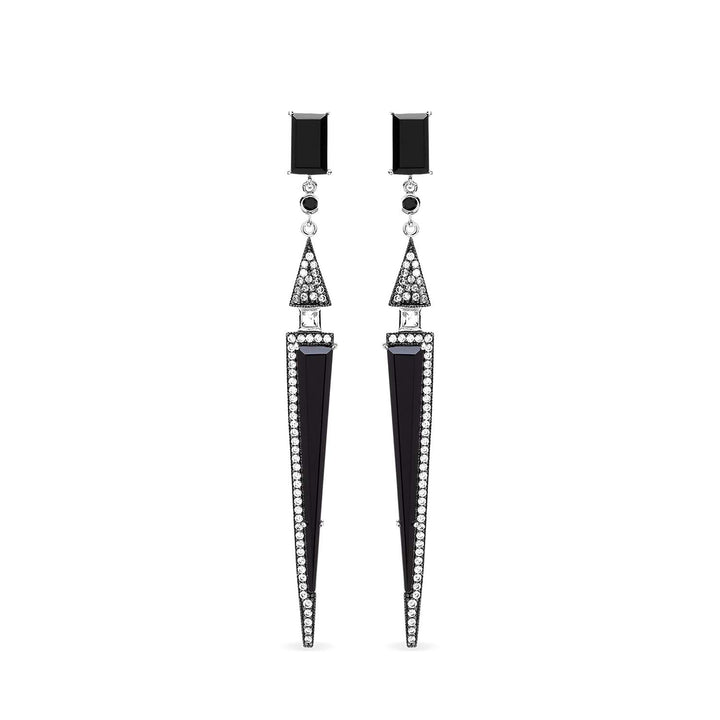 Light Earrings With Natural Black Diamond & Man Made Cz Diamond Stimulant In Sterling Silver & Platinum Black