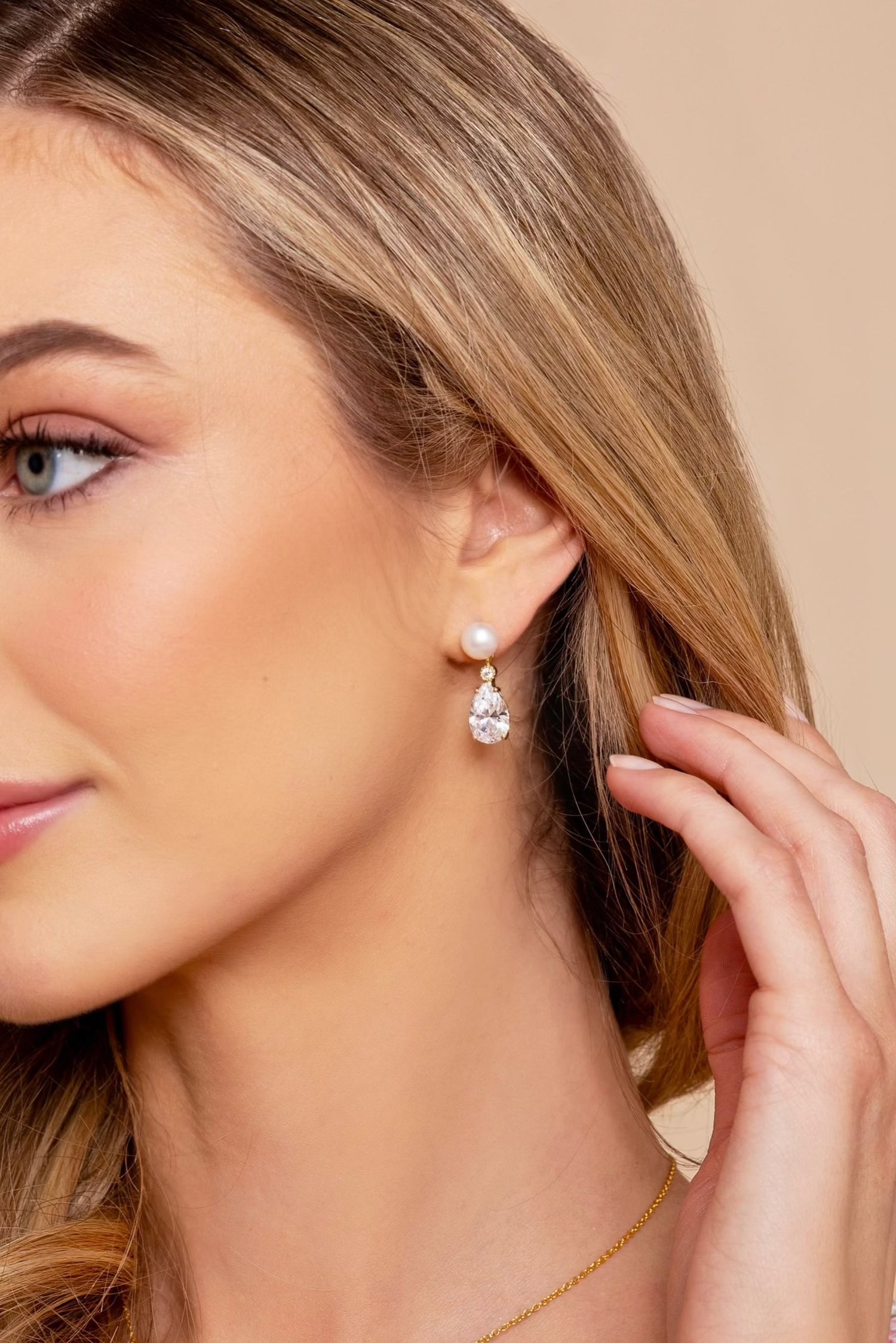 These pearl earrings are crafted from 925 sterling silver plated in 14-Karat yellow gold. They are set with AAAAA-Grade cubic zirconia stones and a freshwater pearl.