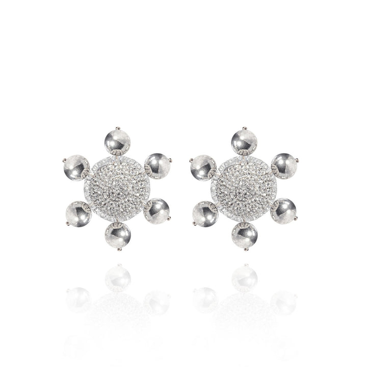 These Jolie Clip On Earrings In Silver Gloss by Saule Label radiate classic glamour. A sparkly rhinestone center is surrounded by silver-plated beaded rays, creating a unique starburst style. These clip-on earrings are for the woman who loves to make a statement without needing a piercing. They are a bold and lavish accessory that ensures you'll shine bright.