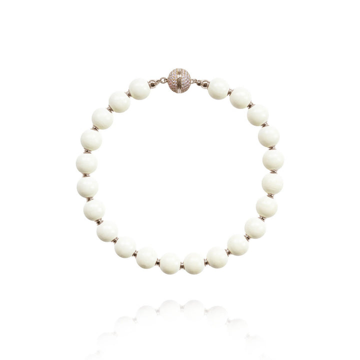 The Siena Duo Necklaces in Creme by Saule Label are a study in sculptural charm and versatility. This set includes two distinct necklaces with hand-painted glossy beads, one curvy and bold, the other sleek and petite. They feature magnetic clasps with a touch of sparkle, allowing you to wear them individually, stacked, or linked together for a dramatic, long statement necklace.