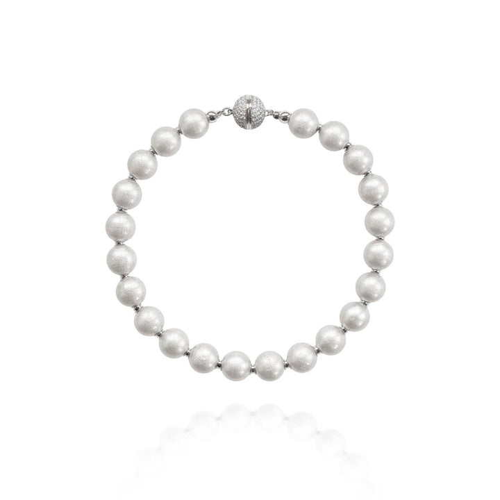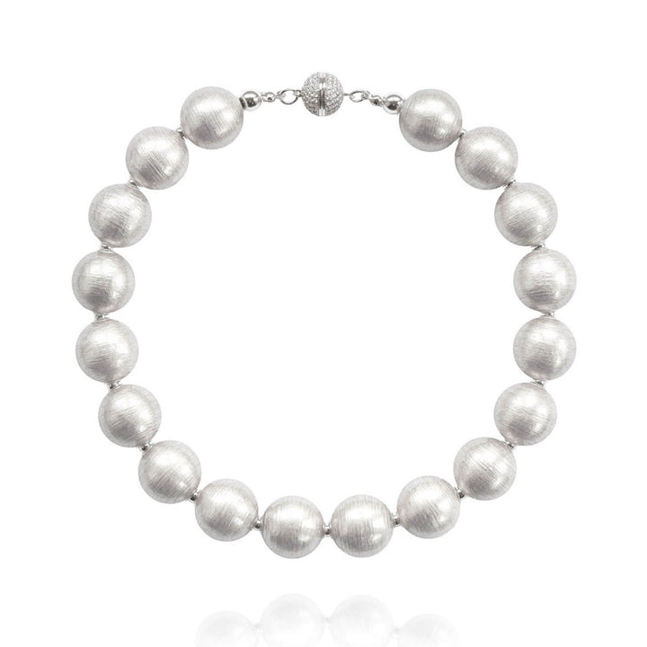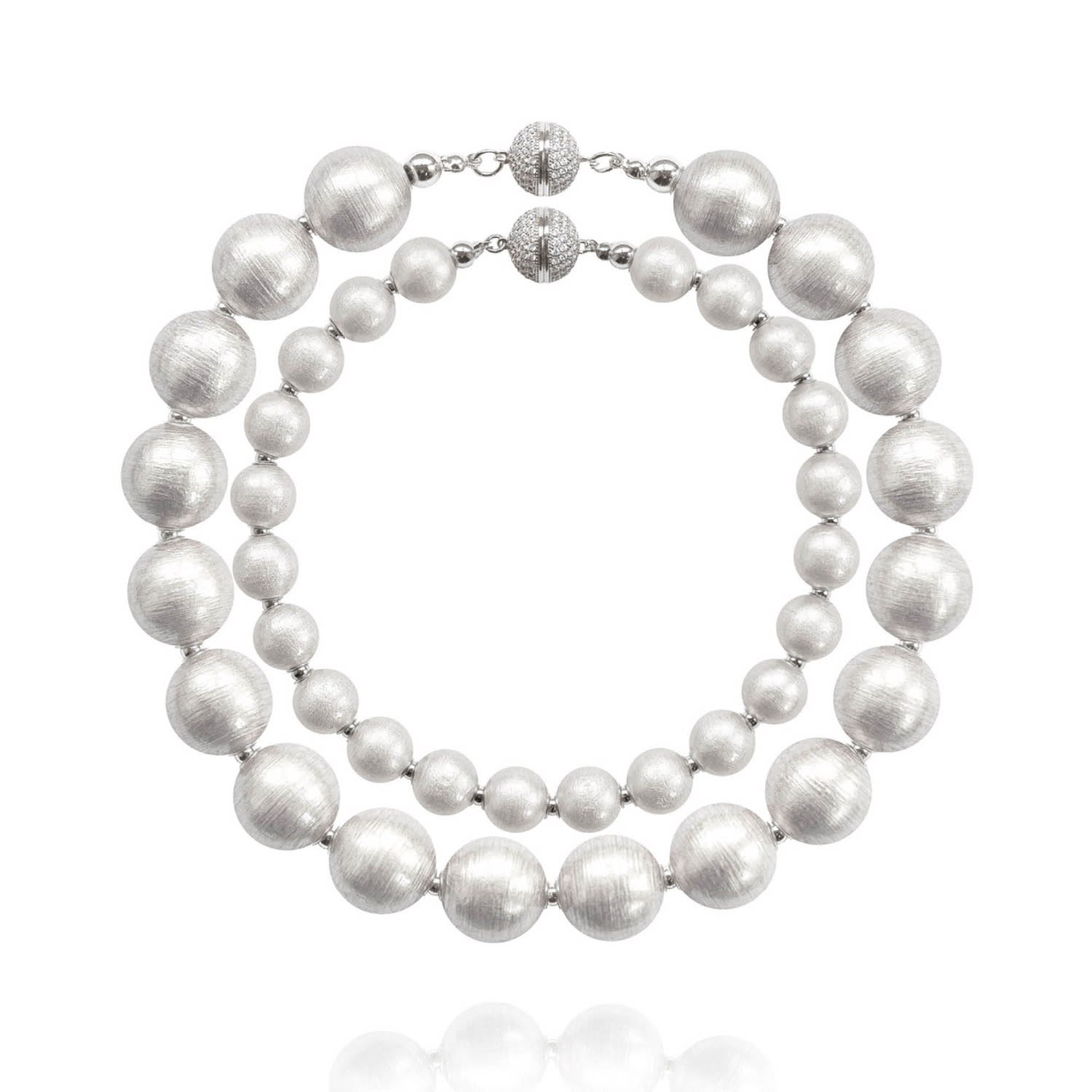 The Siena Duo Necklaces in Frost by Saule Label are a study in sculptural charm and versatility. This set includes two distinct necklaces with hand-painted glossy beads, one curvy and bold, the other sleek and petite. They feature magnetic clasps with a touch of sparkle, allowing you to wear them individually, stacked, or linked together for a dramatic, long statement necklace.