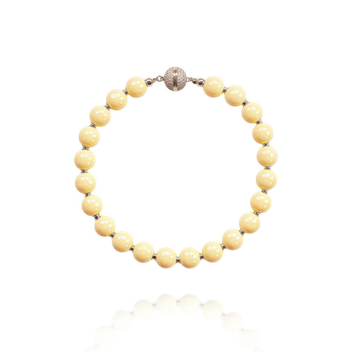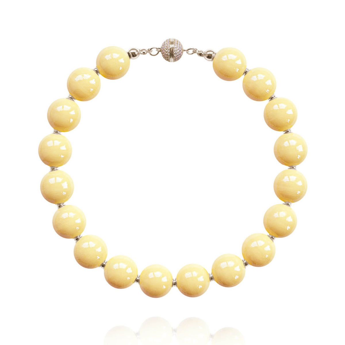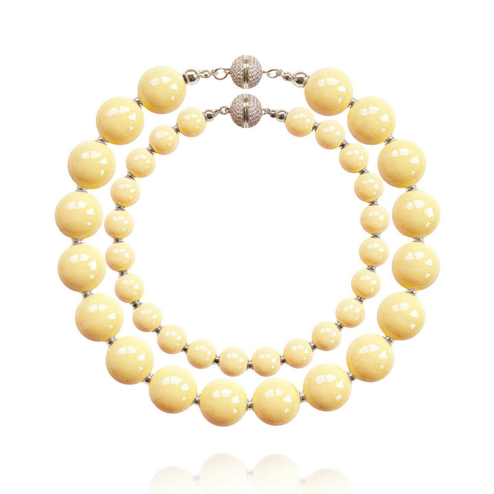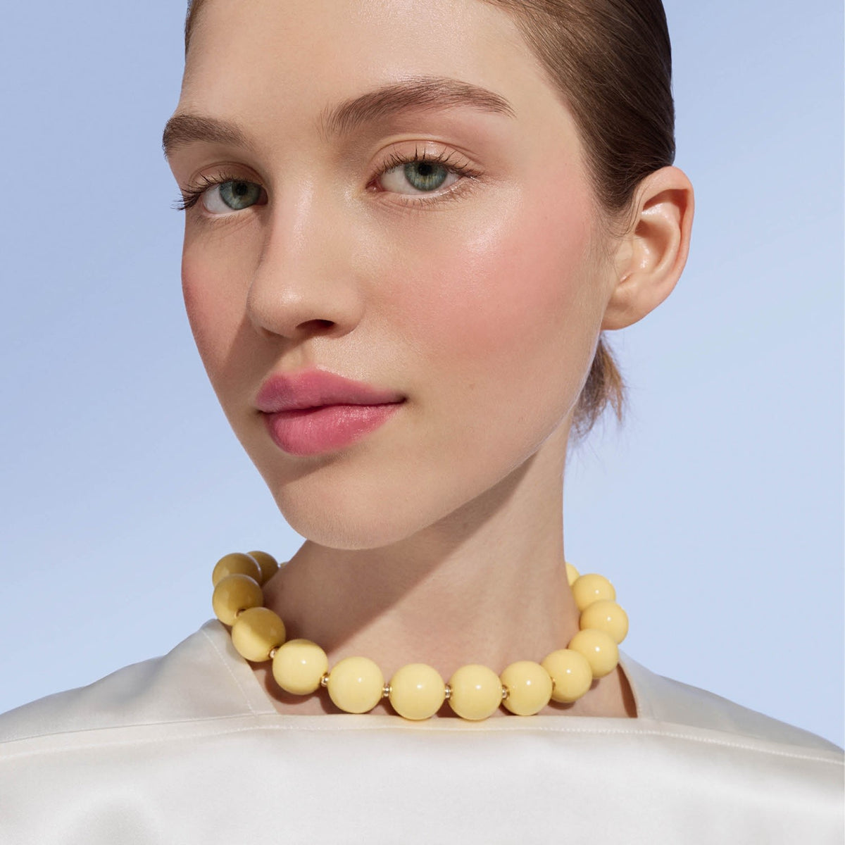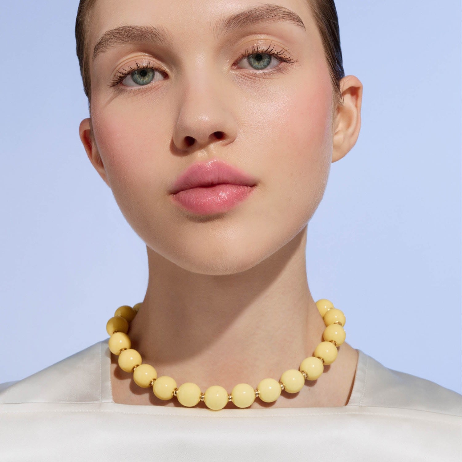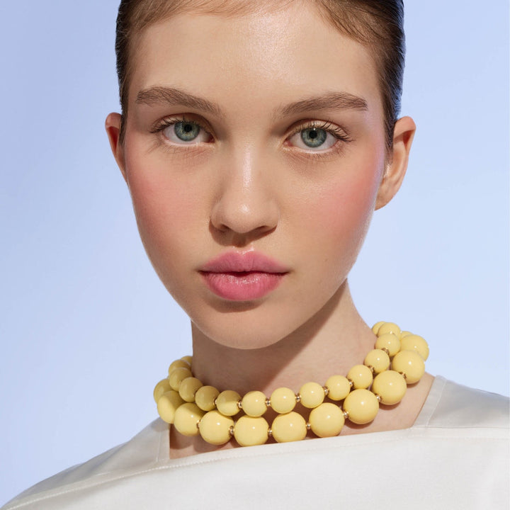 The Siena Duo Necklaces in Buttercup by Saule Label are a study in sculptural charm and versatility. This set includes two distinct necklaces with hand-painted glossy beads, one curvy and bold, the other sleek and petite. They feature magnetic clasps with a touch of sparkle, allowing you to wear them individually, stacked, or linked together for a dramatic, long statement necklace.