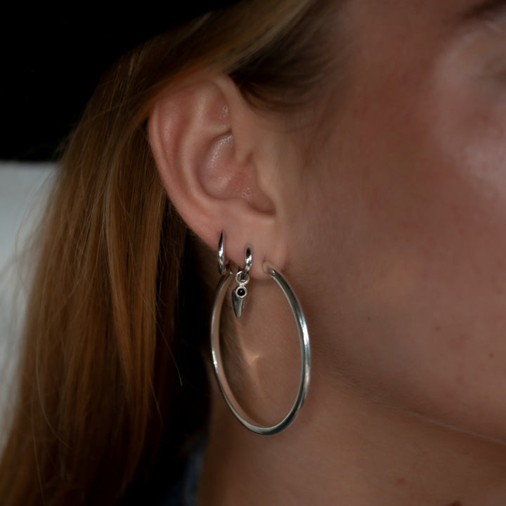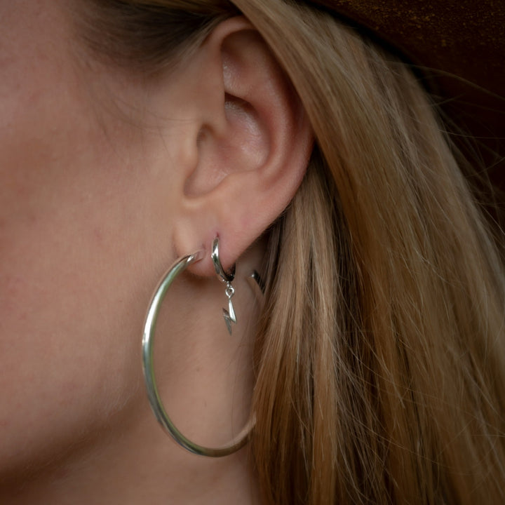 These large hoop earrings are crafted from recycled sterling silver with rhodium or 18ct gold plating.