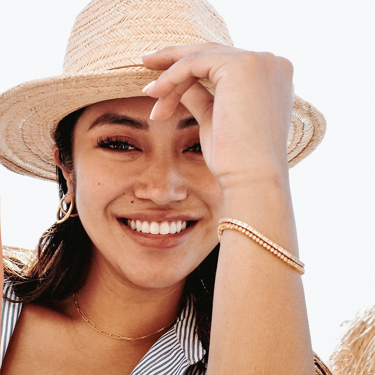 Crafted with three times the standard gold coating and a nickel-free process, this dual-chain bracelet features tennis stones.