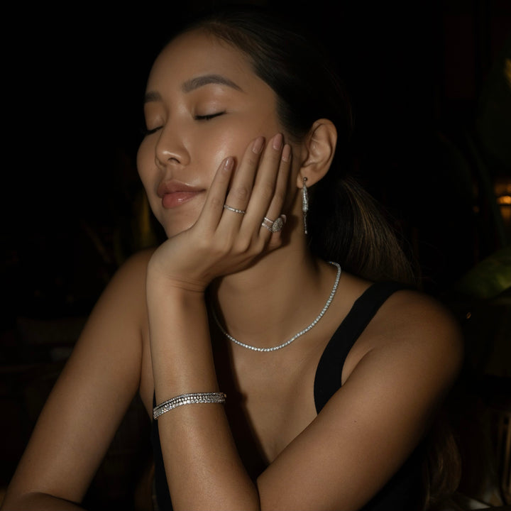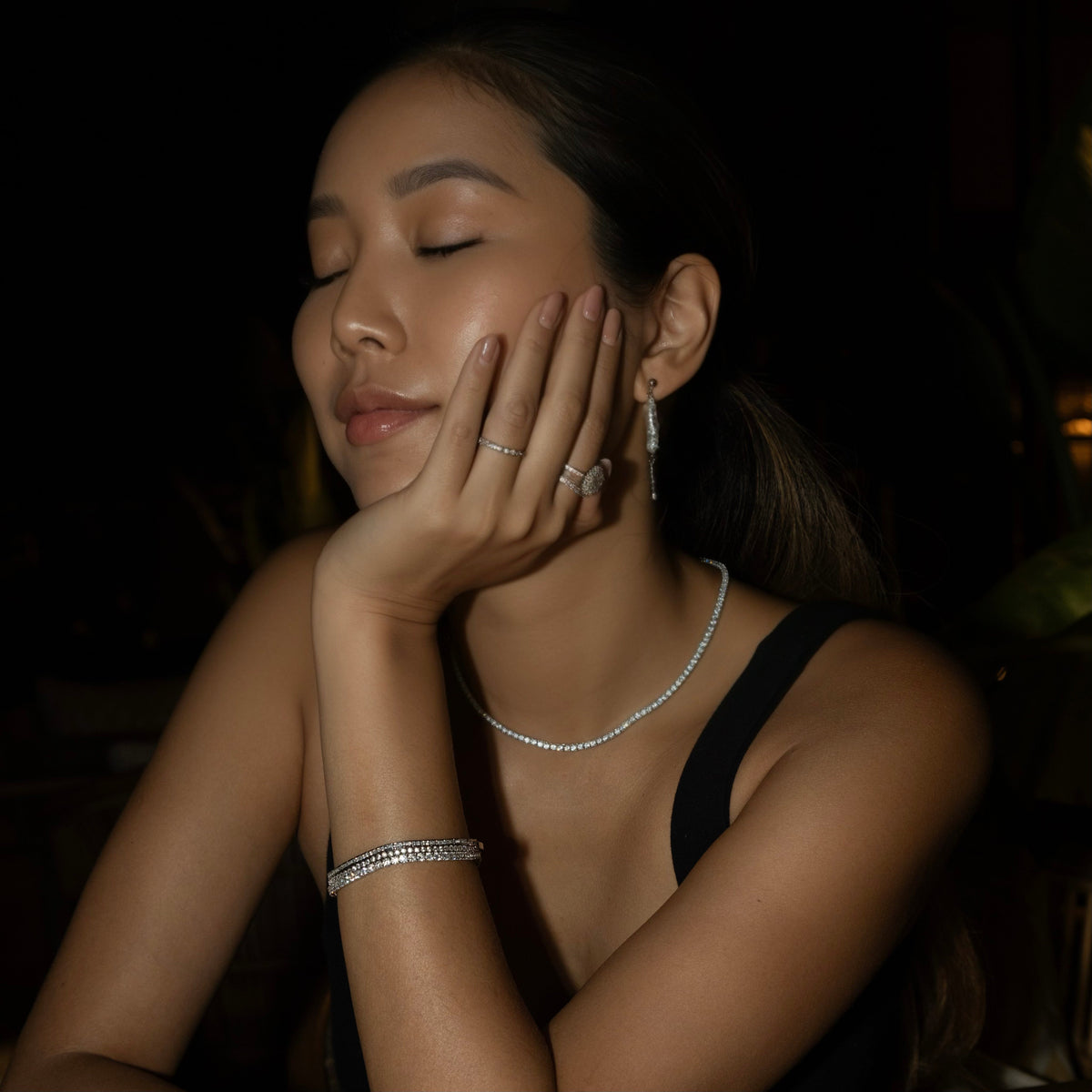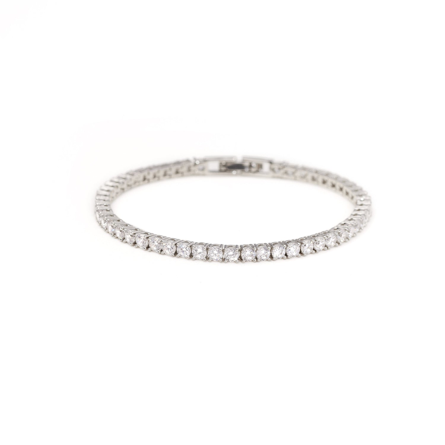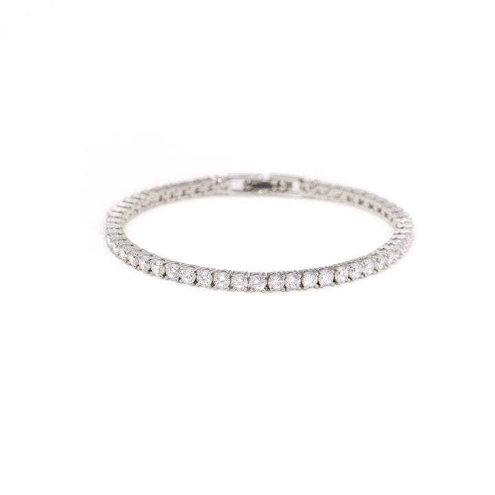 The Tennis Bracelet by Shabella Nyc is a timeless and graceful addition to any collection. Meticulously crafted with a continuous line of dazzling gems, it exudes sophistication and reflects light with captivating brilliance. The piece is designed to be hypoallergenic and tarnish-resistant, making it a versatile luxury for both everyday wear and special occasions.